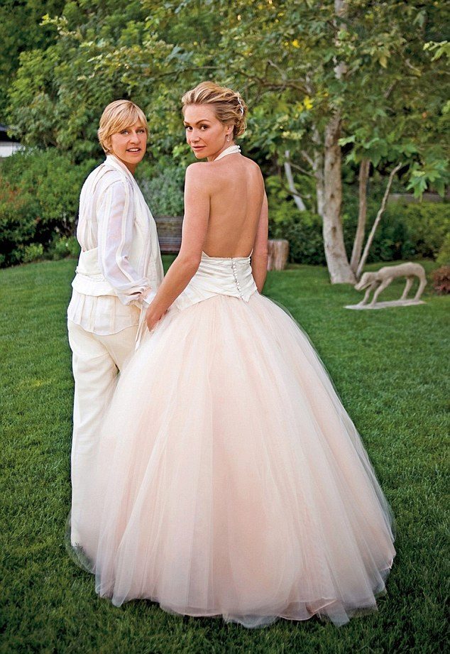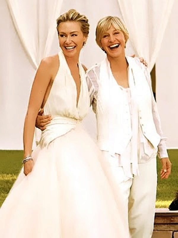 The best friend of the screen star Ellen DeGeneres did not turn to famous fashion designers to create a dress. A chance to unleash their potential and show talent was given to a young designer from New York Zach Posen. The upper part of the dress was presented in the form of a corset, soft in its design, which passed into a fluffy tulle skirt.