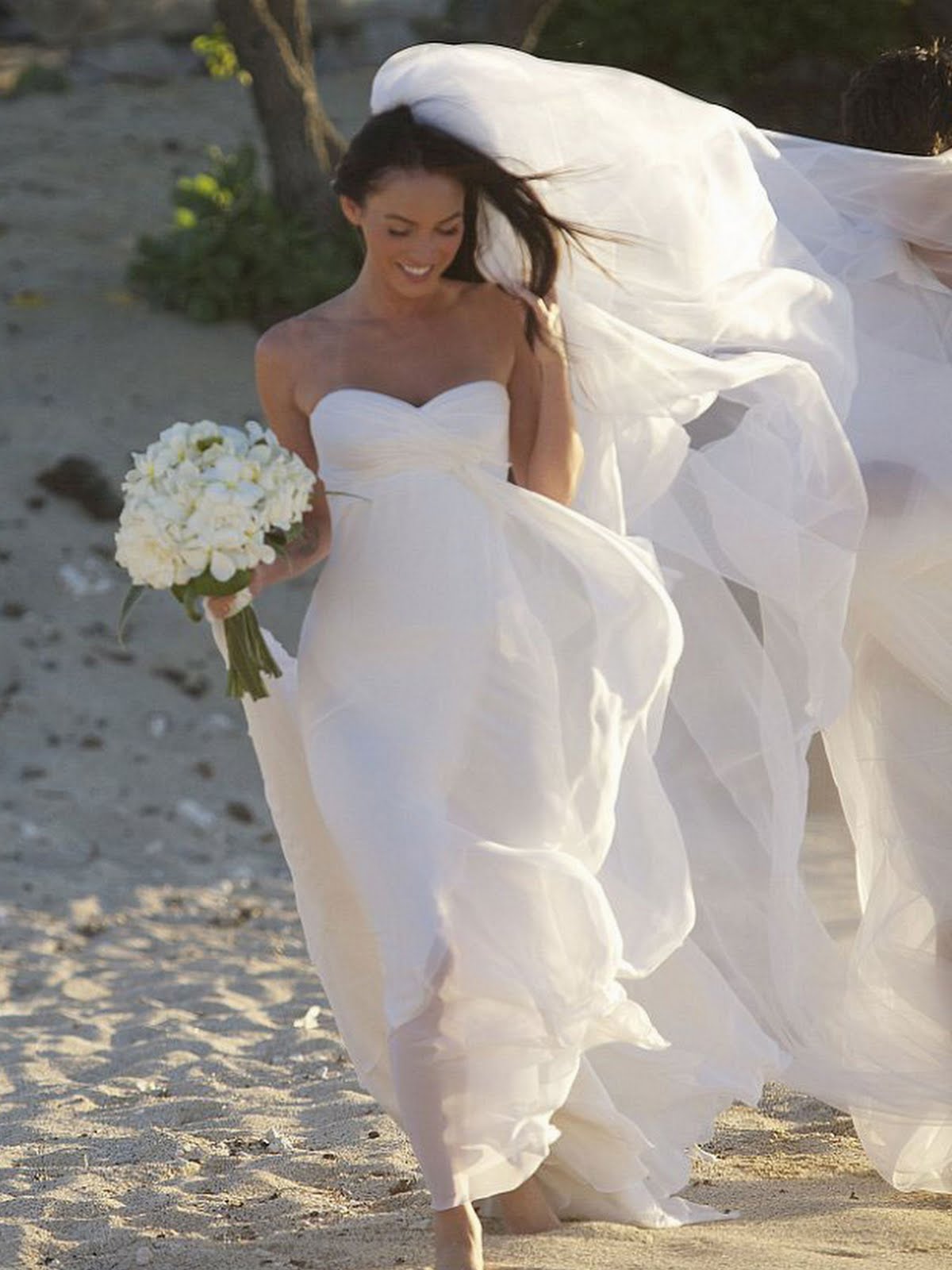 In a modern and free way, Megan appeared at her wedding. This was helped by a dress by Armani, which was simple and airy. Nothing brilliant and pompous, which is not typical for Hollywood stars.