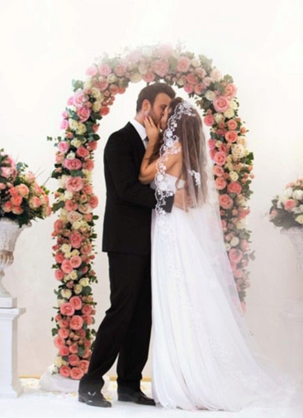 Ani's Turkish wedding was held in a white and pink lush dress. The skirt smoothly turned into a train, the upper part had the appearance of a bodice-shirts with a translucent insert.