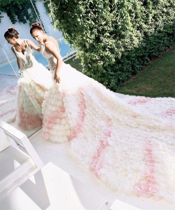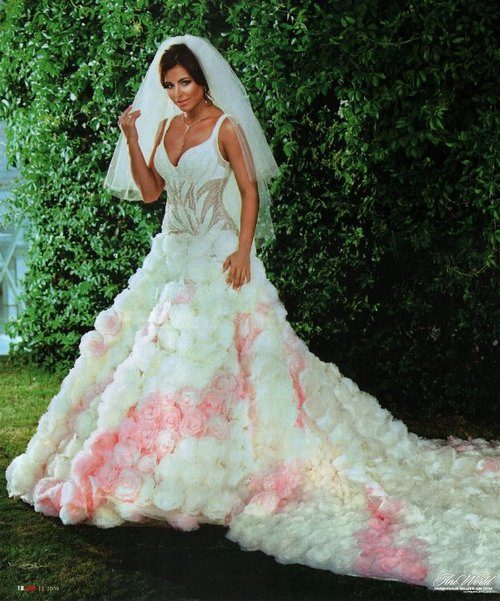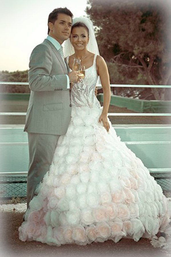 Well, how can you deny your future bride to buy a dress, even if it will be the most expensive, but for billionaire Donald Trump - this is not a problem. For Melanie Knauss the dress was ordered from Christian Dior himself, who chose satin expensive fabric and real diamonds to create it. The cost of the dress amounted to a whole hundred thousand dollars. But not only the cost was too high, it weighed decently - 12 kg. No matter what they say, this dress is considered the most unique until this time.
