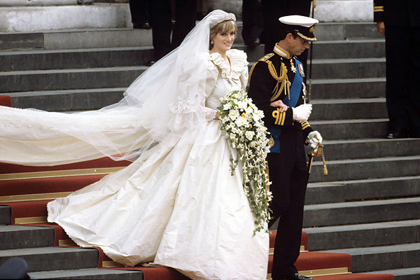 The royal person and the wedding dress should also be royal, like Princess Diana. She went down the aisle in an insanely luxurious and simply chic satin dress.