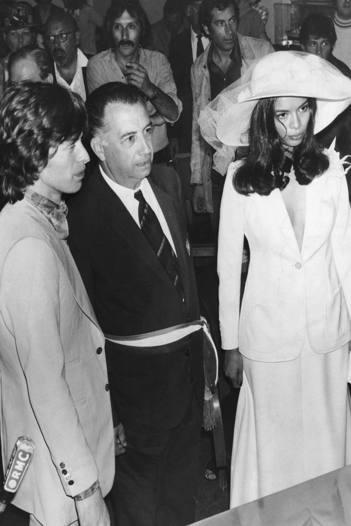 Already back in 1969, a wedding celebration was held by John Lennon, who chose Yoko Ono as his wife. The pair was dressed in snow-white, even blinding clothes.The bride stopped at a short dress, high golf, designer glasses and a hat with wide brim.
