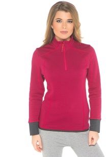 For sports fit models of sweaters without a high neck, with a hood, cuffs on the bottom of the product and sleeves. They are perfectly combined with sports trousers, leggings, leggings and sports shoes.