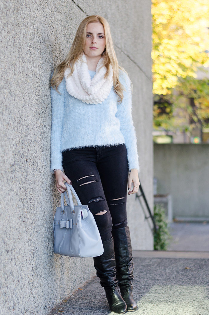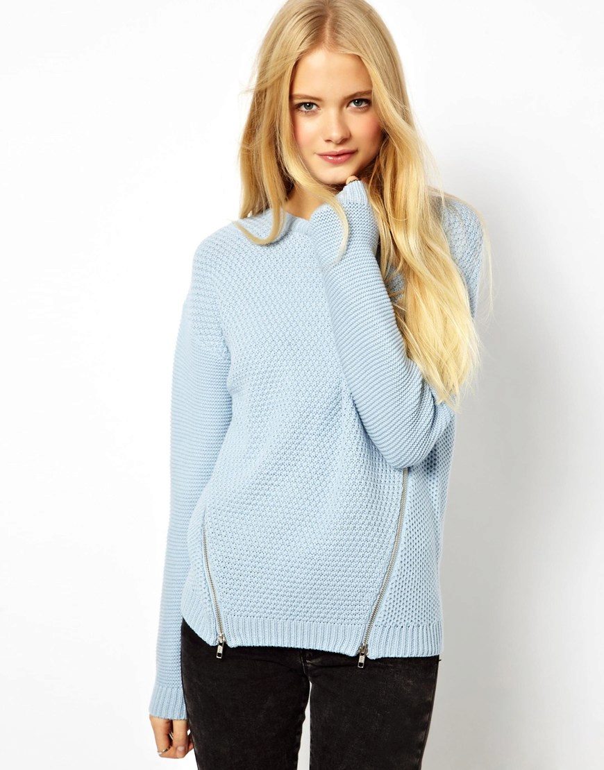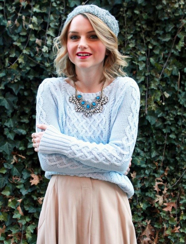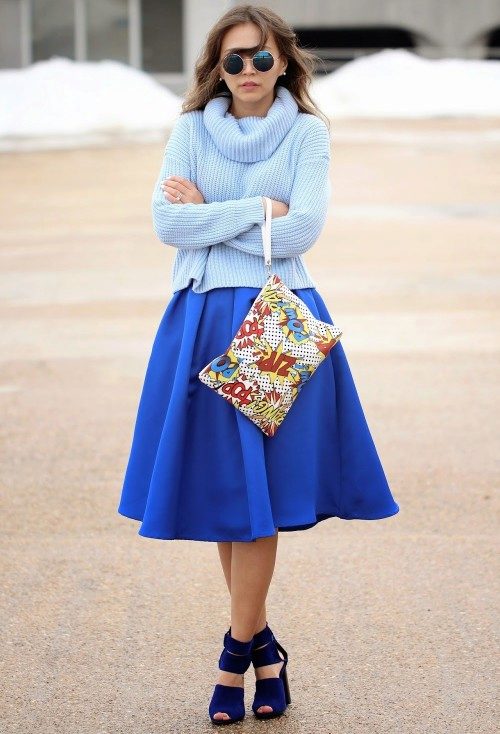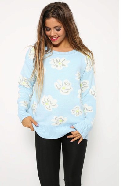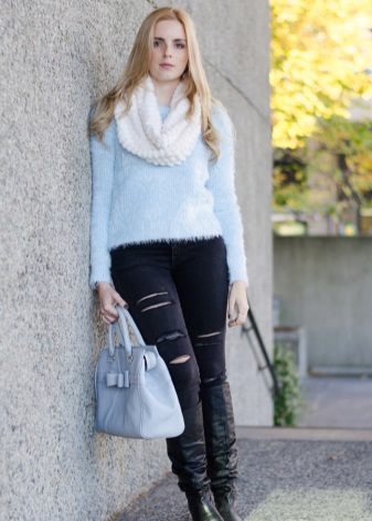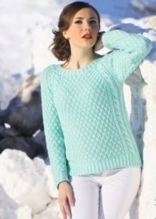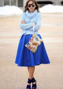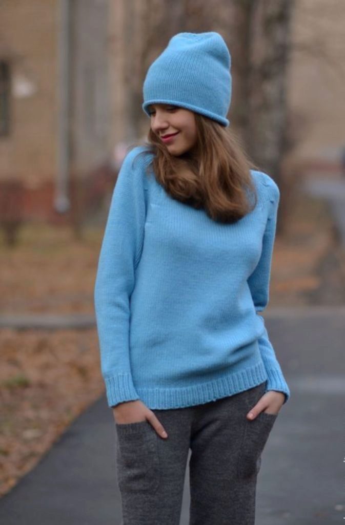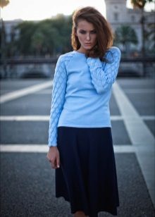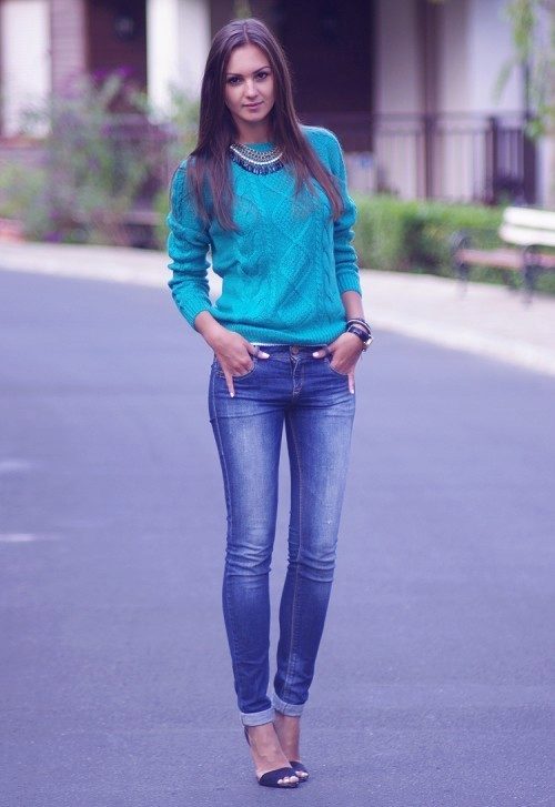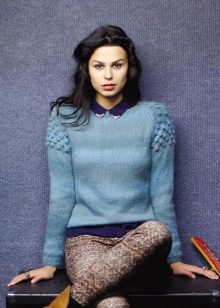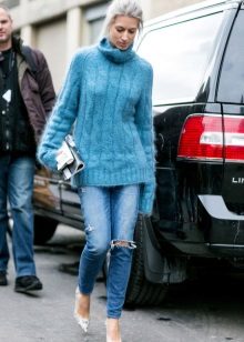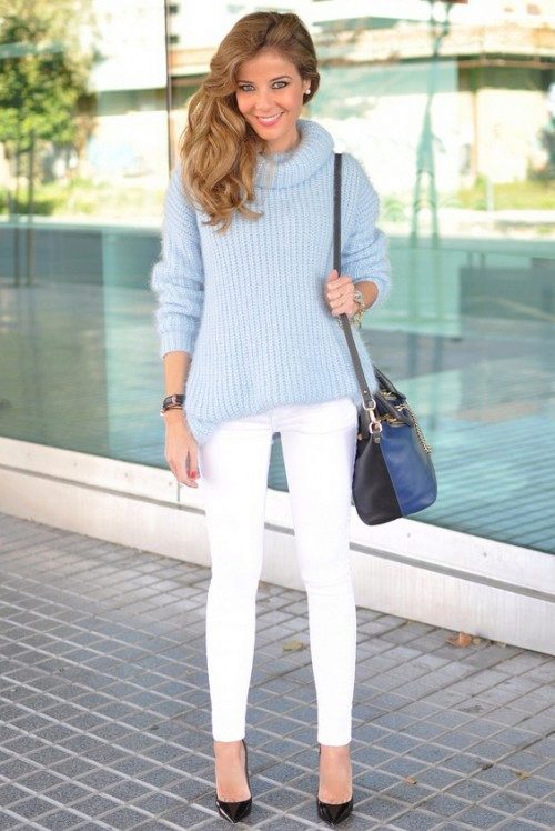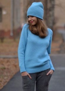 Despite the fact that blue sweaters do not belong to the basic wardrobe items, they are perfectly combined with any bottom, be it jeans or a skirt, the main thing is to choose a harmonious shade.