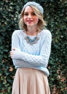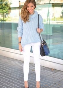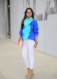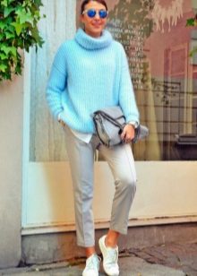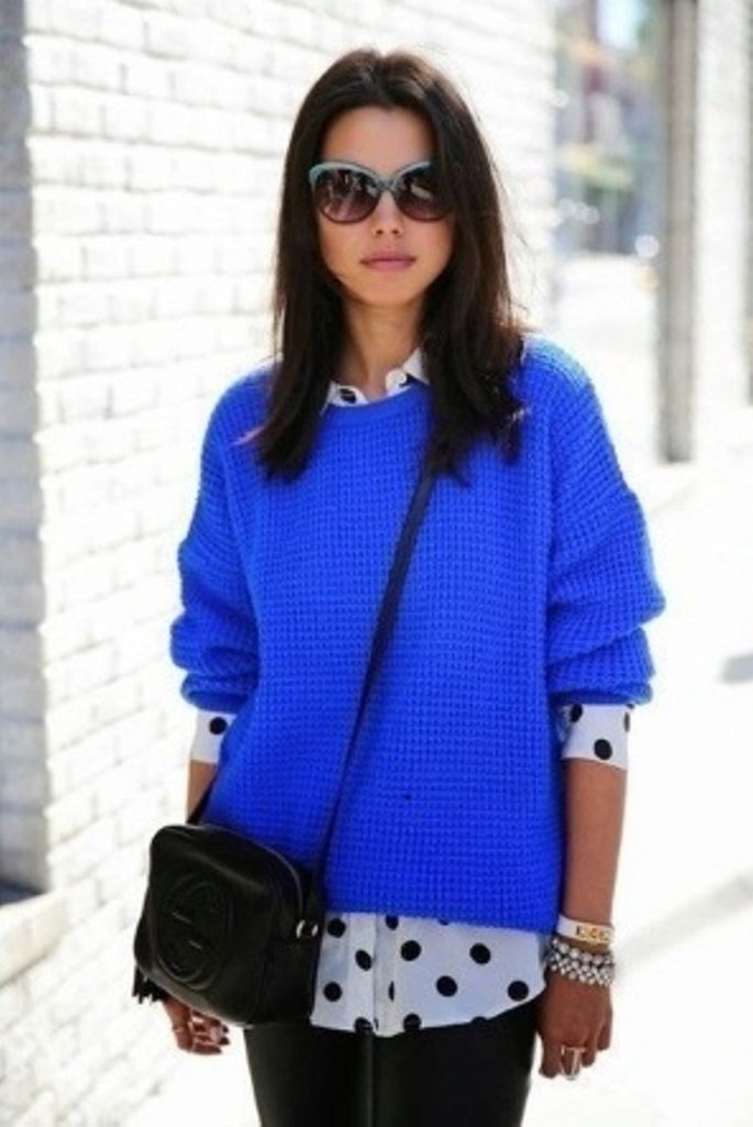When choosing a blue sweater, pay attention to the colors of the rest of the wardrobe.Blue blends well with both neutral tones and a bright palette.