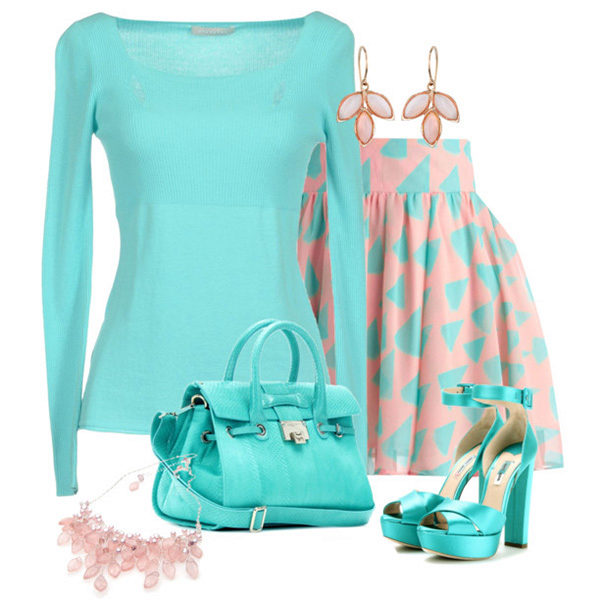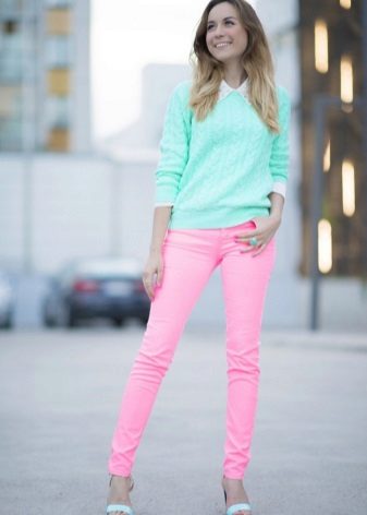 Blue and pink - current, delicate and sought-after tandem. Of course, it is not permissible for the office, but for a romantic date it is quite appropriate.