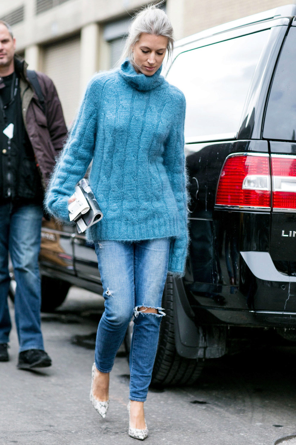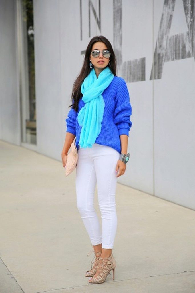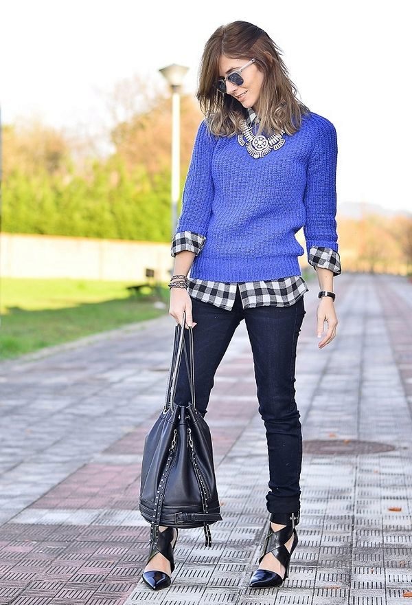 A sweater is always a universal thing, with which it is easy to create bows for every day. And the blue sweater is no exception. Despite his rather specific color for combination with another palette, he is still loved by fashionistas and is now in trend.