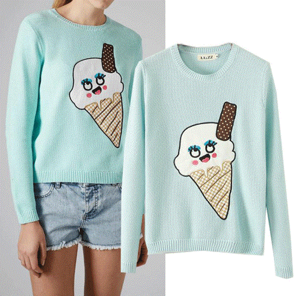 Animal images are another trend in sweater production. Koals, pandas, cats and dogs - fashion designers know how to attract the attention of girls.