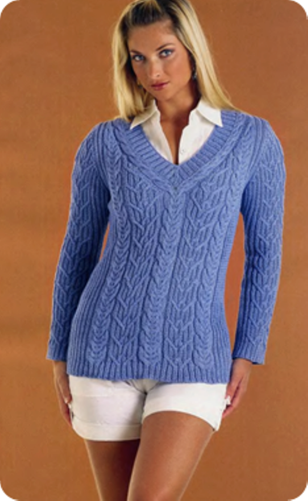 For the Rectangle type (shoulders, chest, waist and hips are about the same) the main task is to create volume where it is needed. Therefore, sweaters with vertical convex patterns and with patch pockets are designed to achieve these goals.