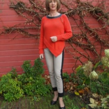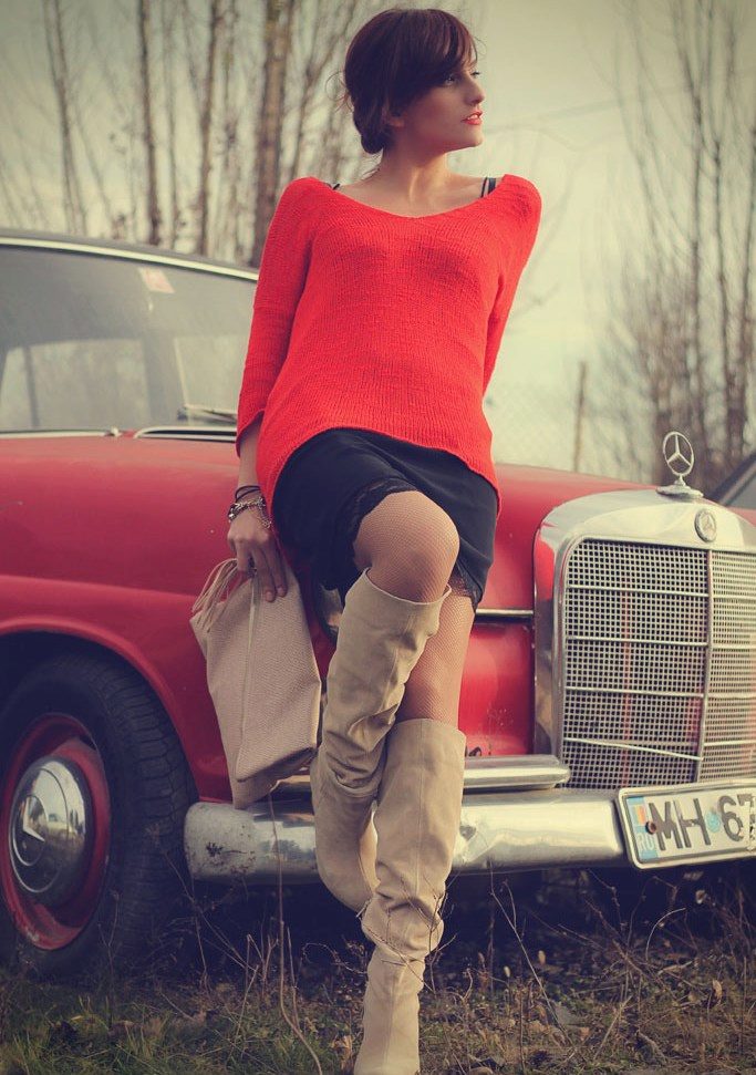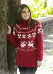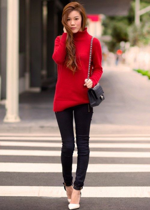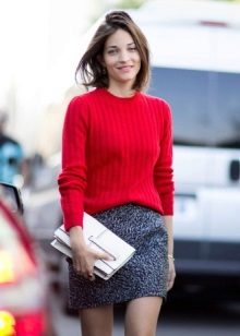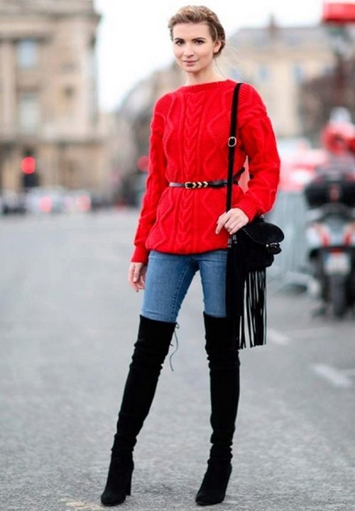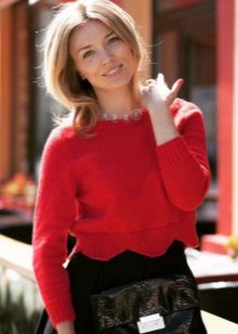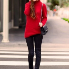 Red sweater will help to fully reveal the image. Older women will gain elegance, and young ladies will look attractive and sexy.