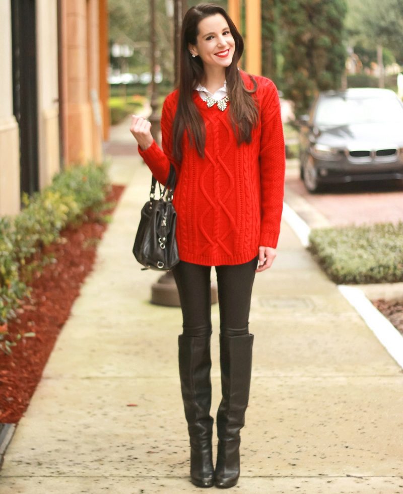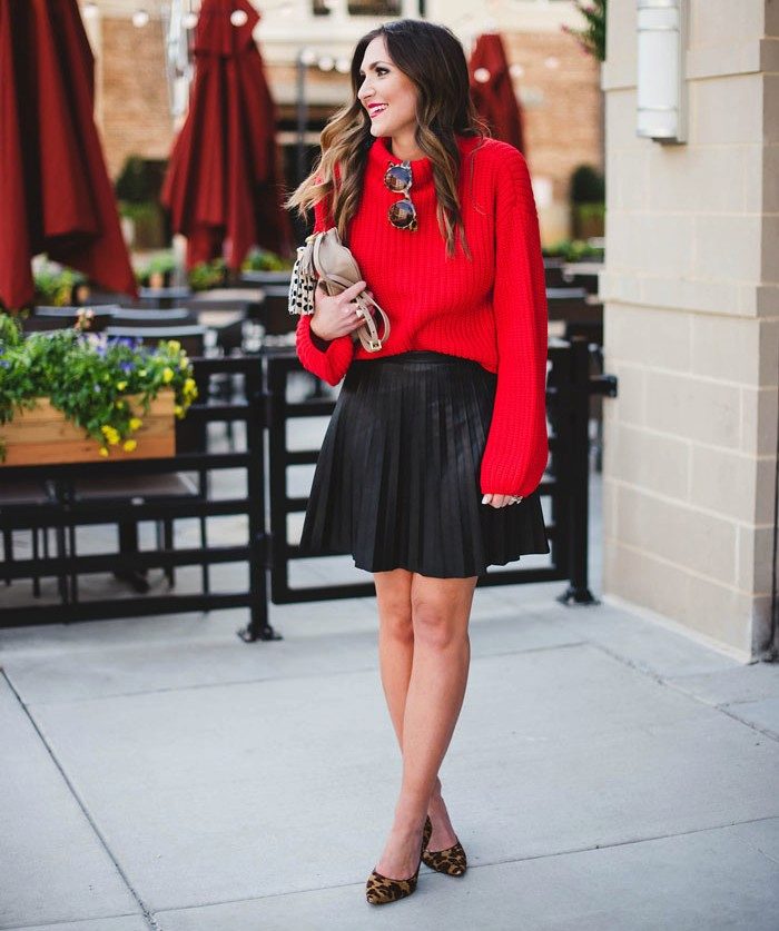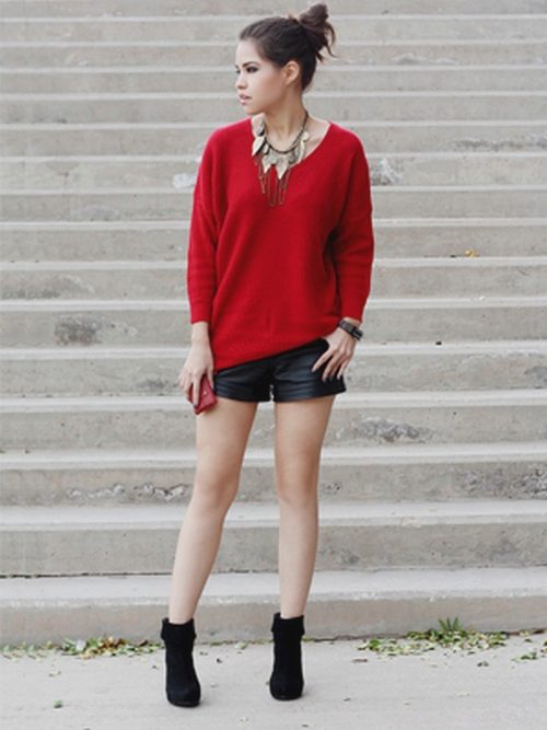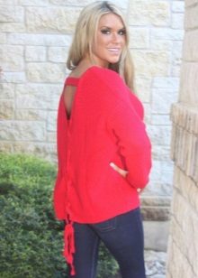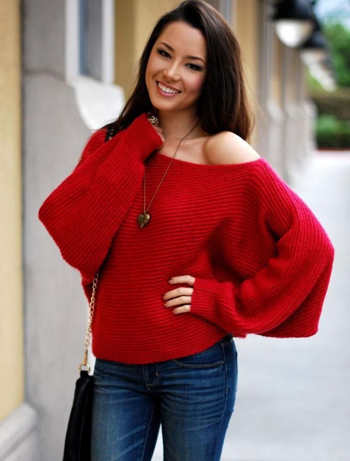 A red sweater with open shoulders or a back is ideal for special occasions, parties or romantic dates. He will give a stylish bow attractiveness and sexuality.