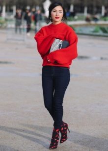The red sweater has become an indispensable element of the wardrobe for the embodiment of bright bows in casual style. It is distinguished by its convenience, versatility and current color solution.