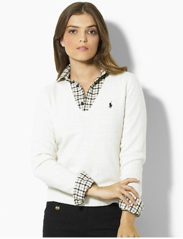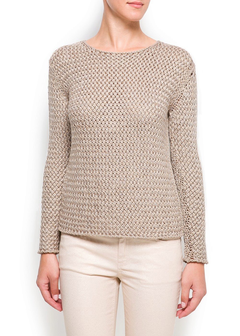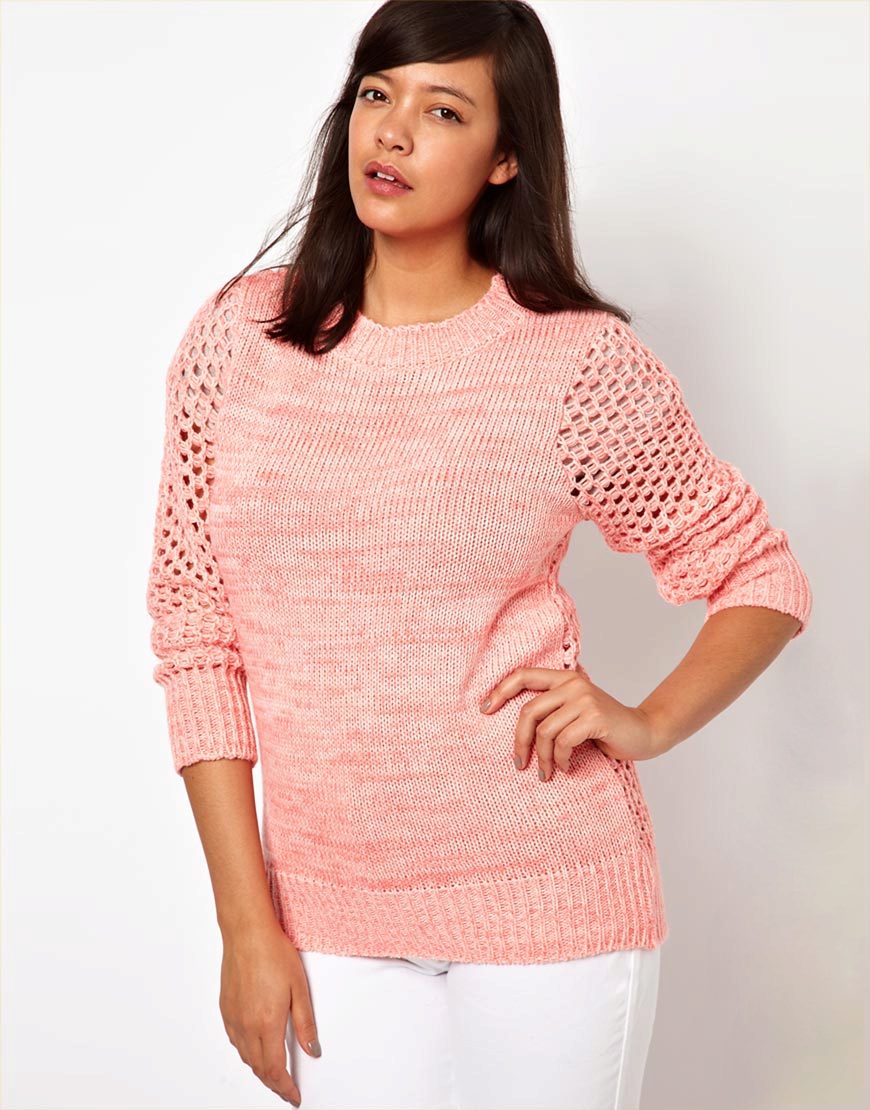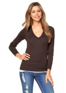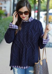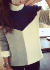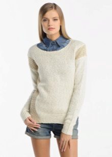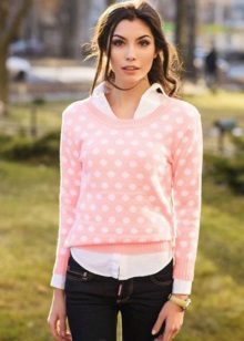 The look of a fake sweater looks like a pullover worn over a shirt, and a sweater mesh requires an extra layer of clothing beneath, in the form of a T-shirt or T-shirt, because the knitting is done in such a way that the product worn over a naked body may look too vulgar.