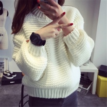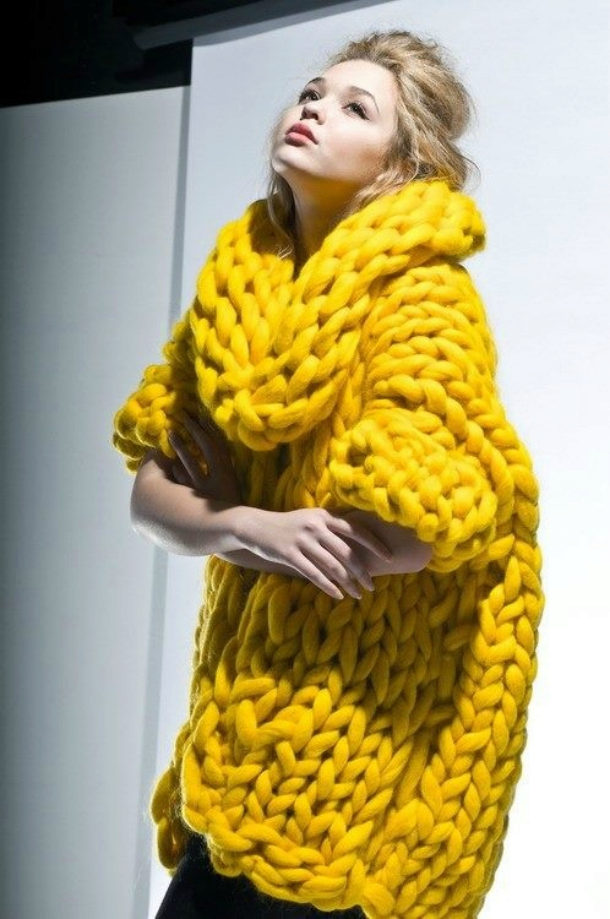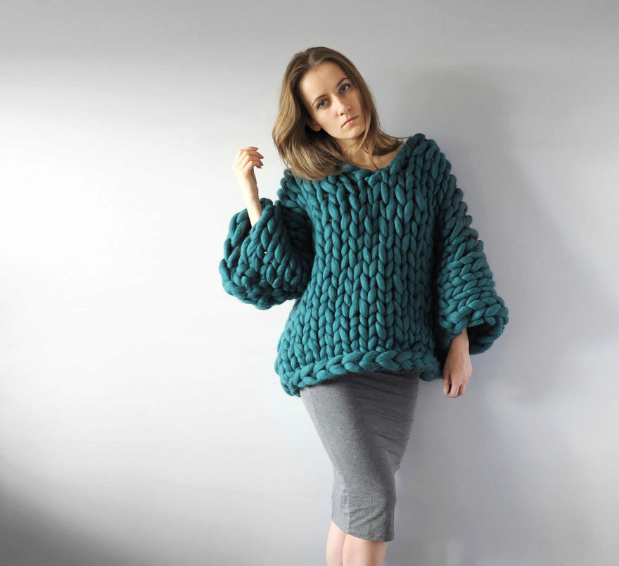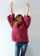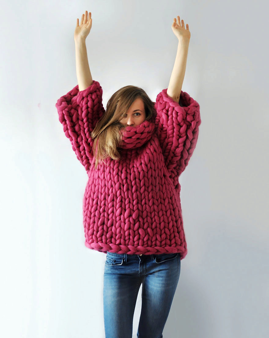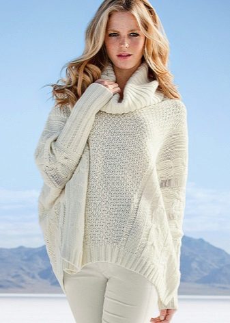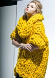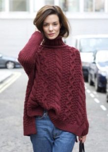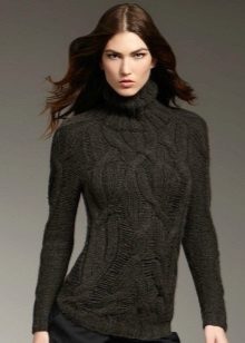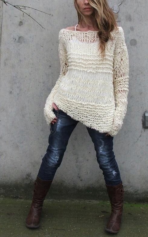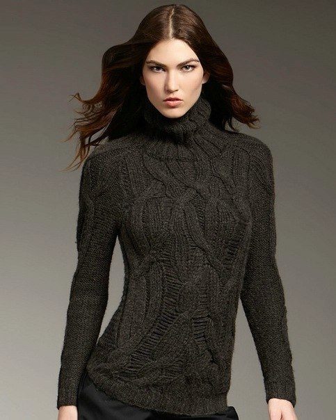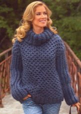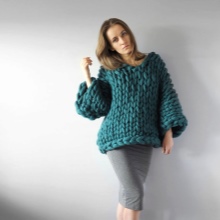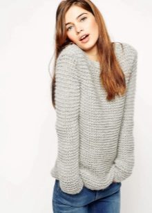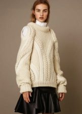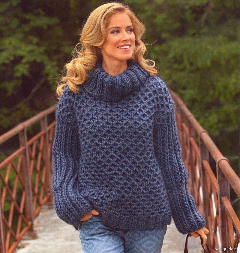 Thick sweaters made from natural wool fibers warm very well and retain heat inside. Such models of sweaters can be made in two versions: a thick yarn can be used, and the sweater itself is made in the form of a large knit, and also the technique of dense knitting from several layers of thin wool fiber can be used.