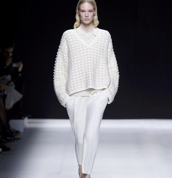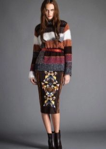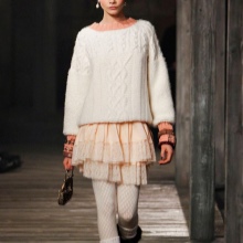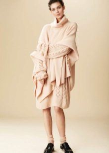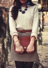 A striking example of a combination of a sweater with a dress will be a set of a gray oblique check case and an oversized ivory mohair sweater.