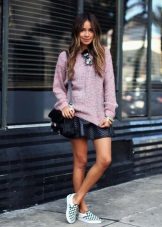 Fur or inflated vests are perfect for tight sweaters, as well as large-knit models, a T-shirt can be worn under a sweater, and sneakers are quite useful for creating an image in a sporty style.