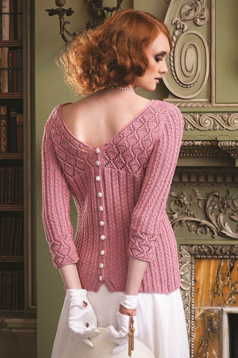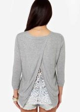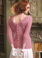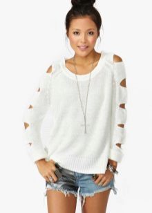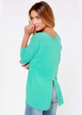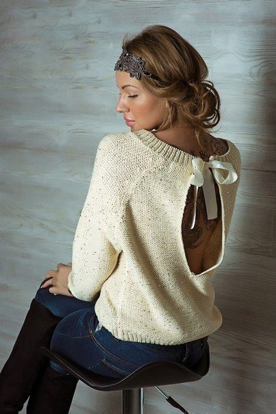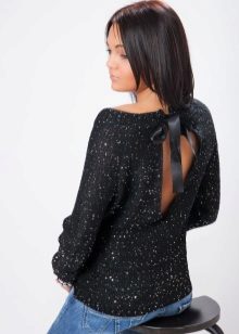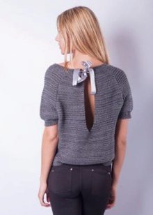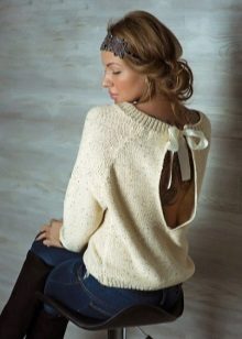 A model of a sweater with an open back looks very feminine, which has a deep incision on the back, fastened with ties or a decorative button in the neck.