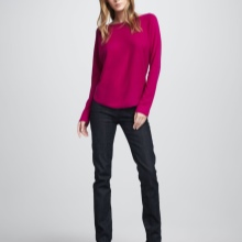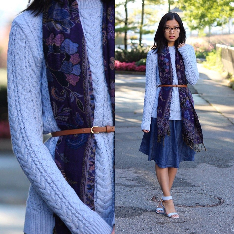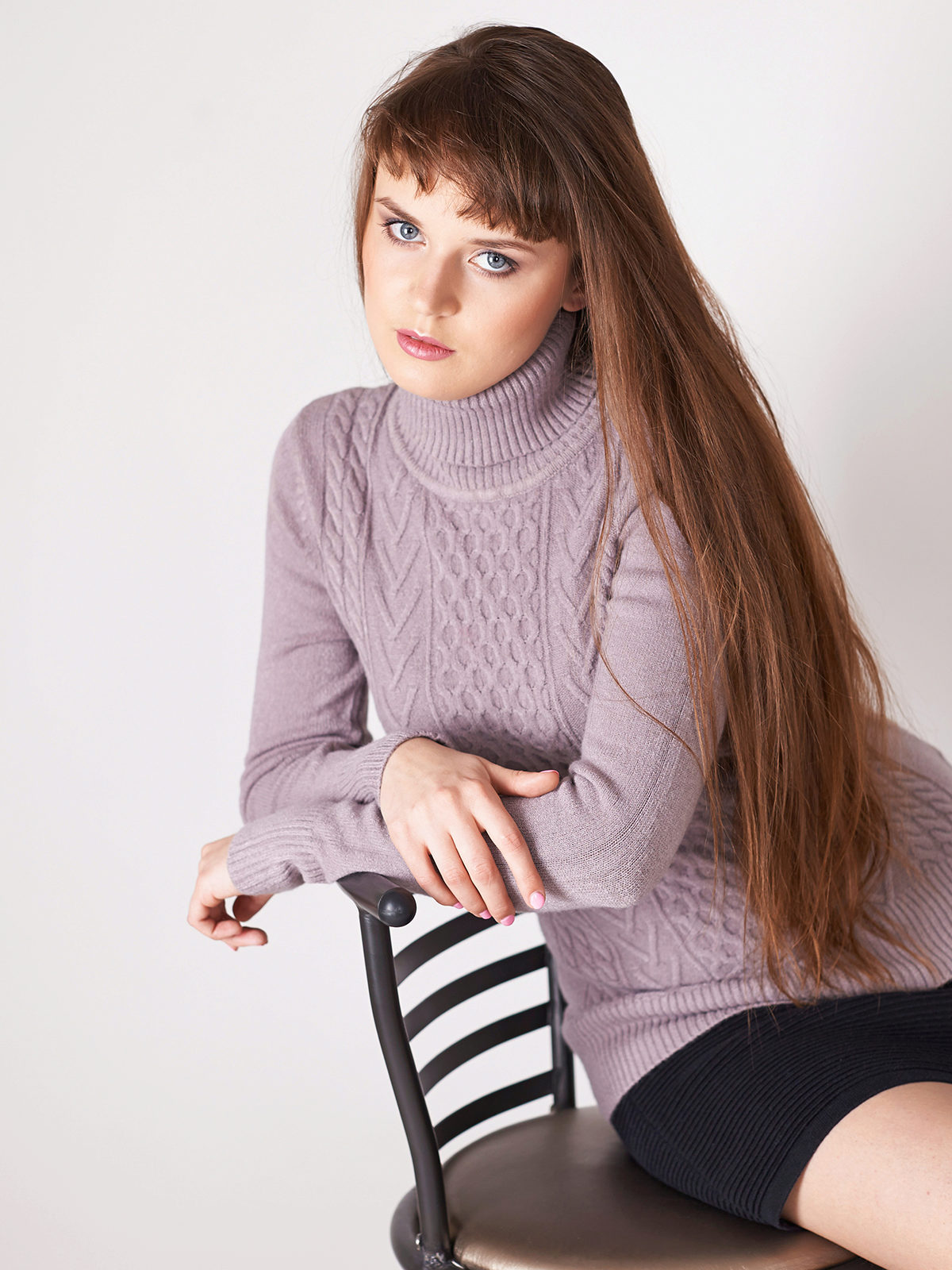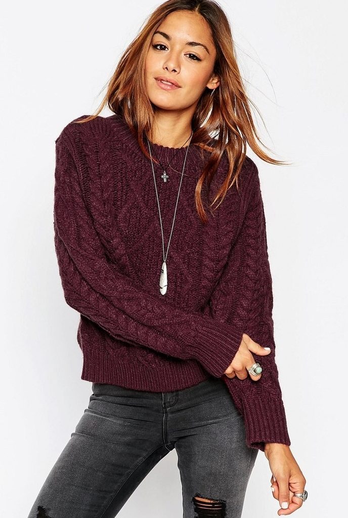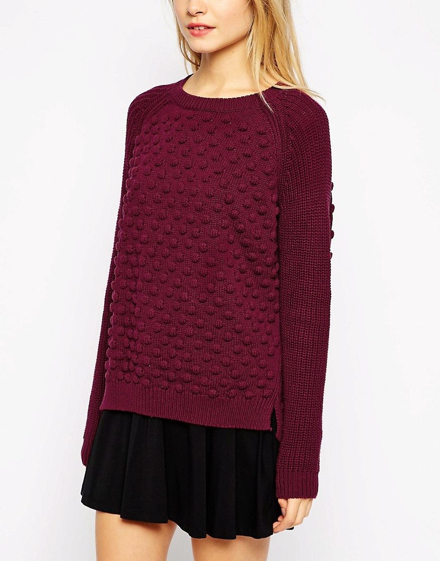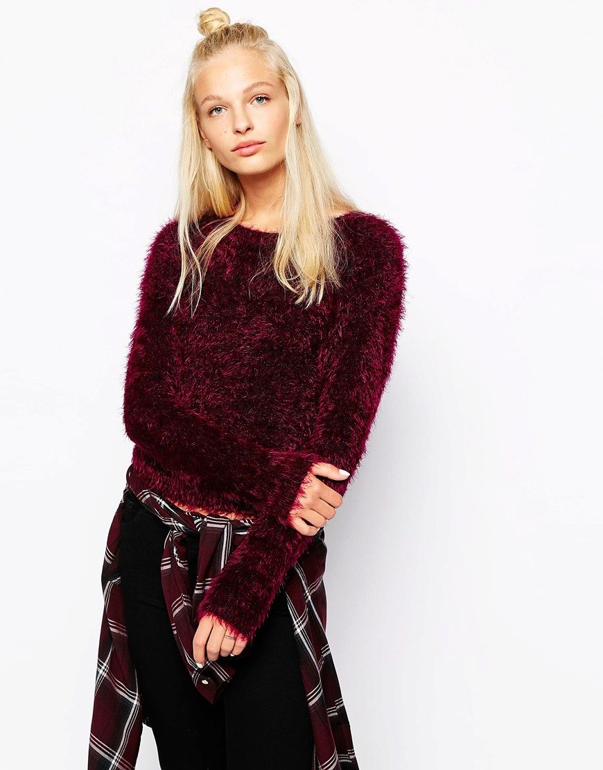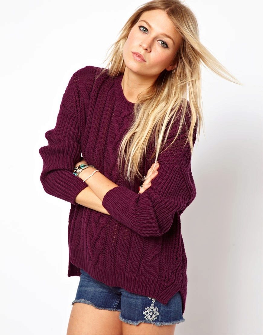 Purple sweaters look very good in dark shades that emphasize eye color and skin tone favorably.