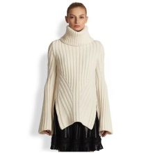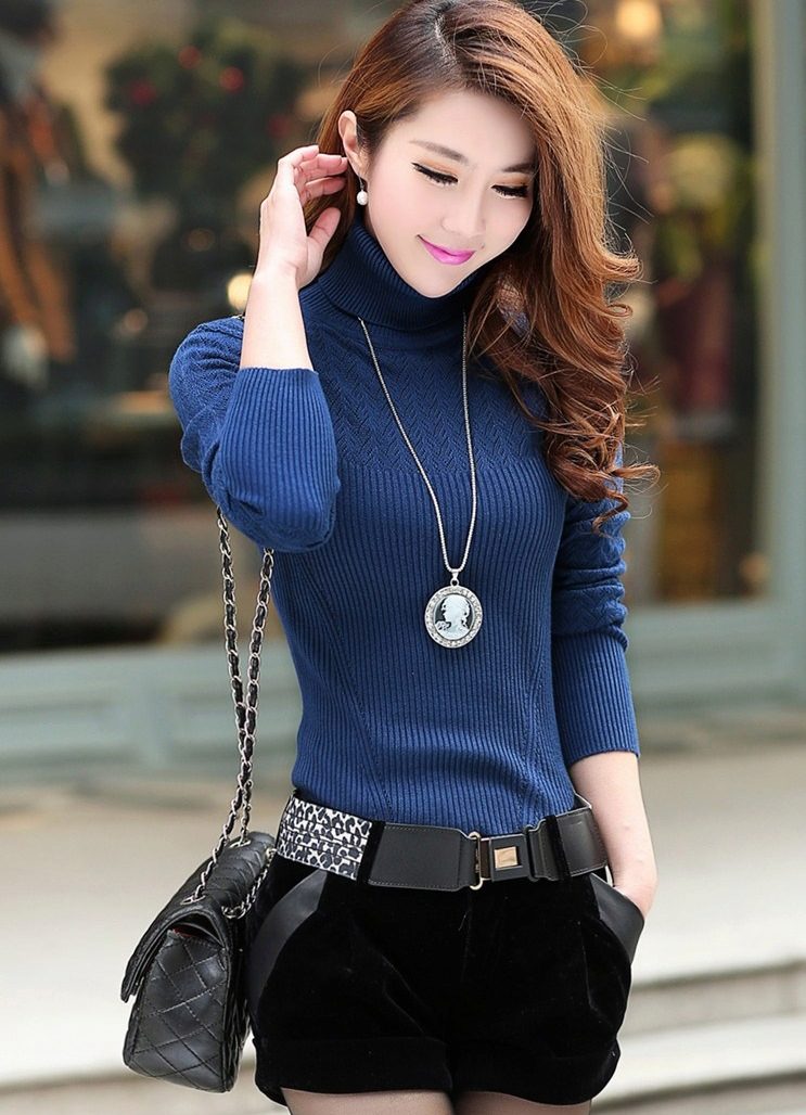 Chanel sweater has a characteristic model, with a rounded neckline and slightly shortened length, and a turtleneck sweater has external similarities with the classic sweater model, but more tight fitting style, like a golf sweater.