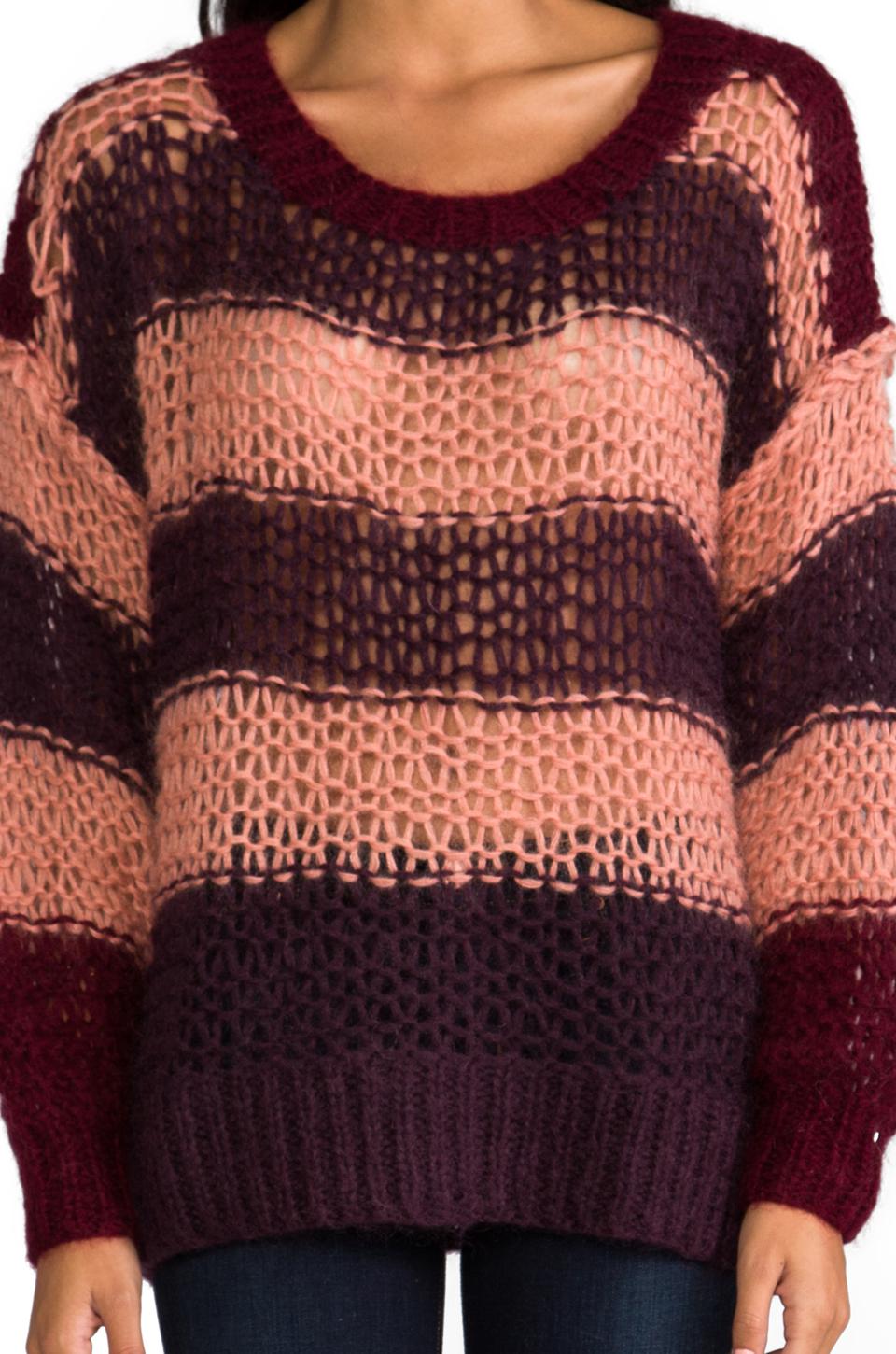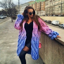 A very interesting model of the Lalu sweater has a distinctive distinctive feature consisting in a knitting, made in the form of volumetric braids, as well as in a coloring, which is made of several colors, smoothly passing from one to another.