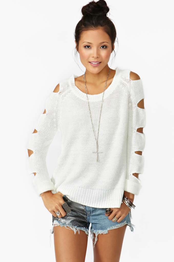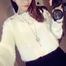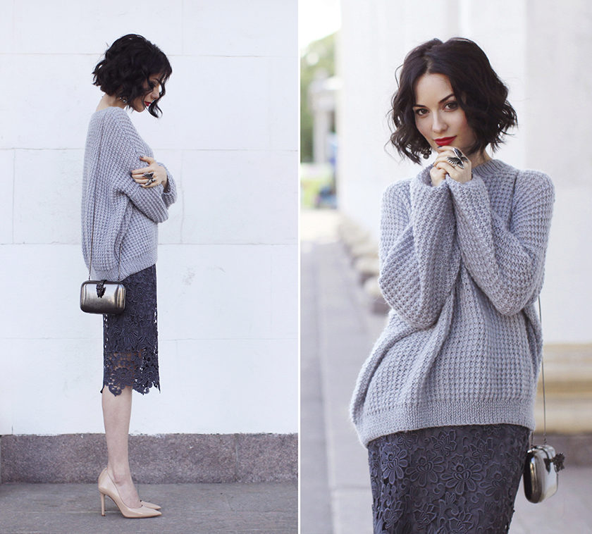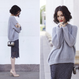Sweaters with lace sleeves are also popular, be it a special knitting style or just lace. Such models look incredibly feminine and tender, like sweaters with lace frill at the bottom.