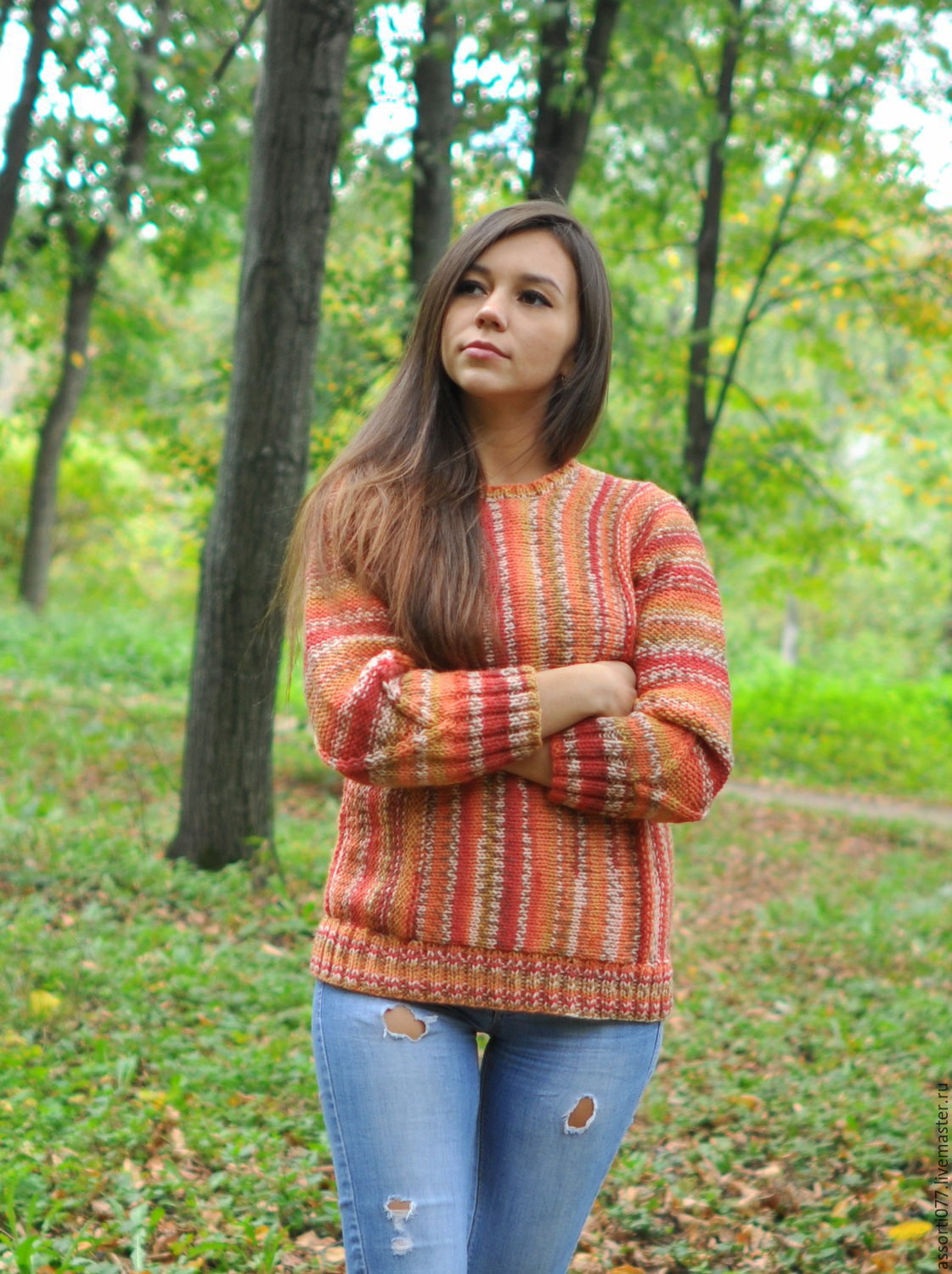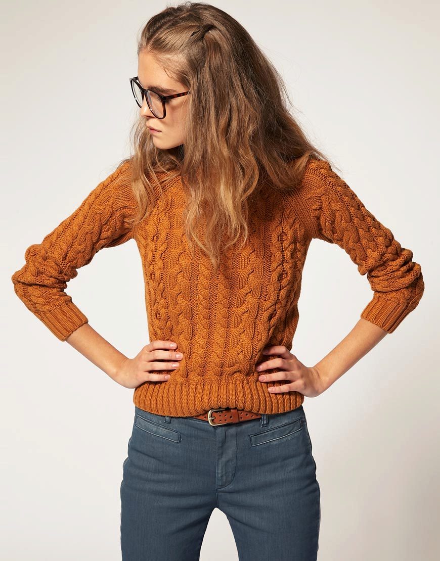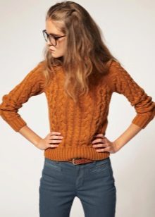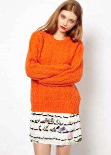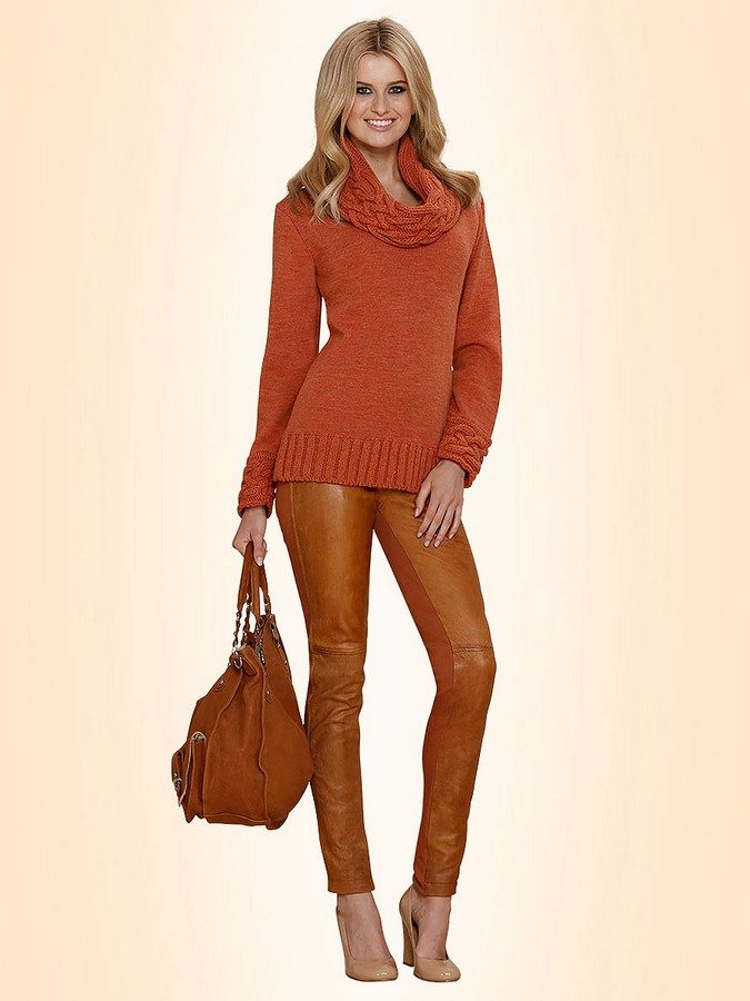 Orange sweaters go well with a dark and light bottom, but it’s best to have soft shades of this bright tone, since the original color is not for everyone.