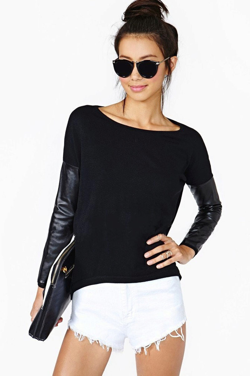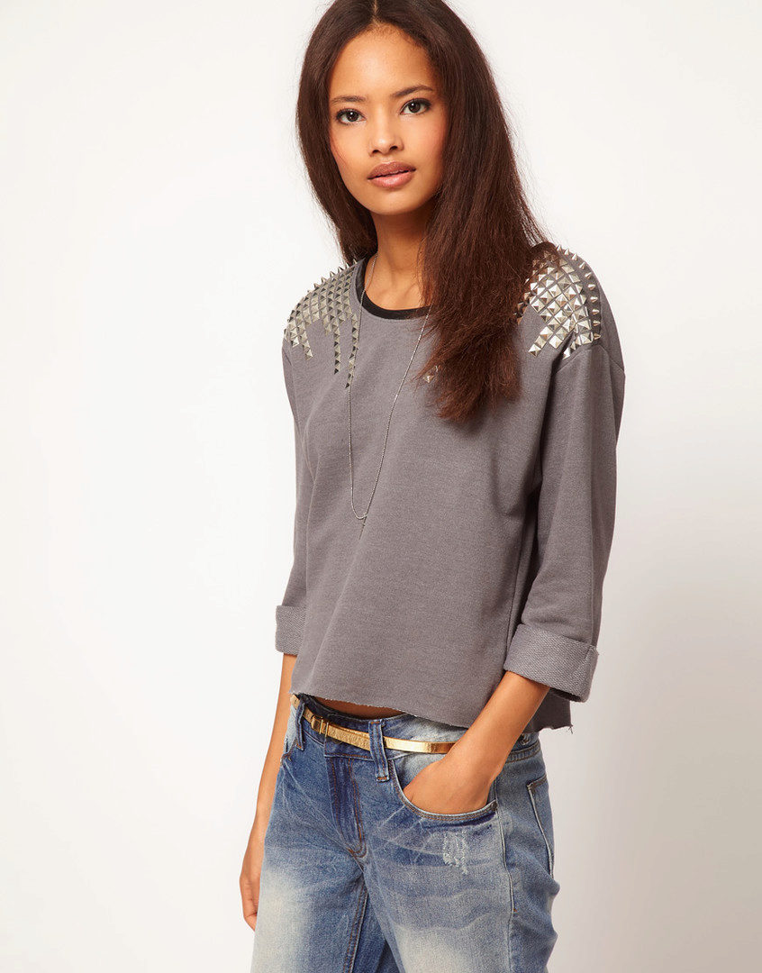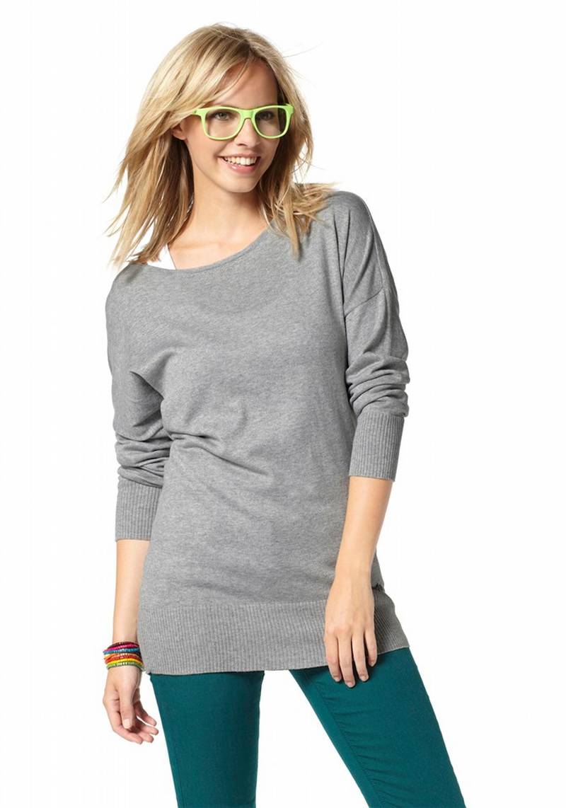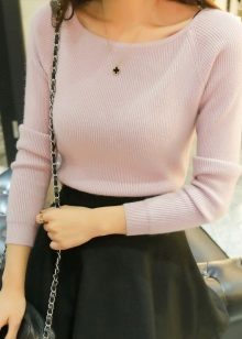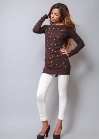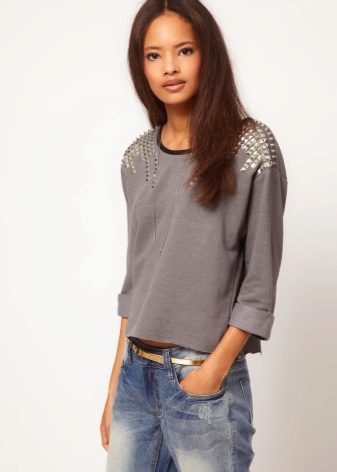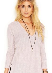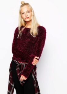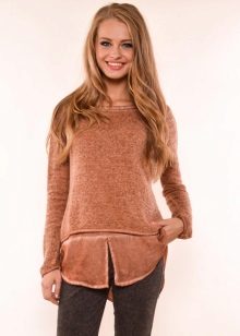 Sweater - the tunic is slightly elongated and loose in style, for a sweatshirt sweater is characterized by the presence of a hood and slimming cuffs, and the sweater top, also called cropping sweater, has a shortened length.