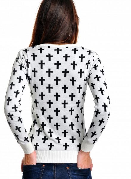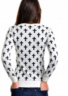 Prints on sweaters can be made in the form of birds, skulls, small stars and classic peas, depending on the style of the thing.