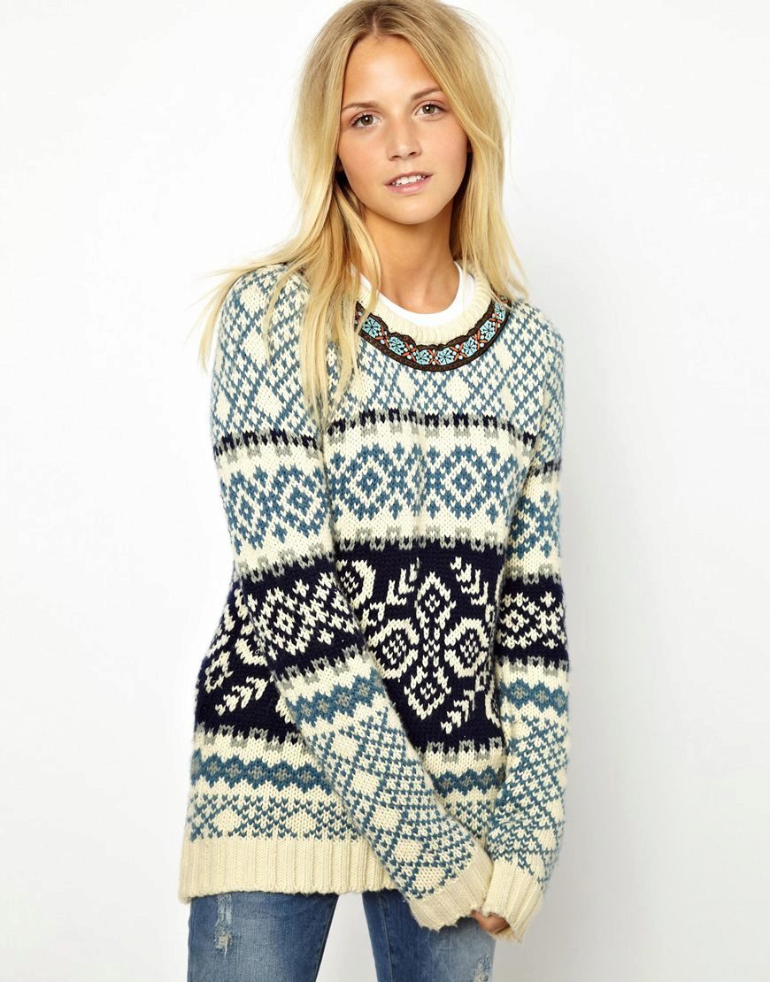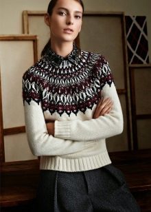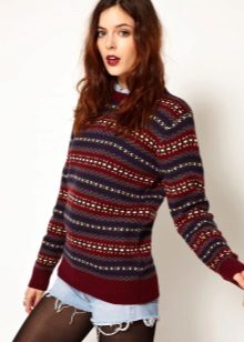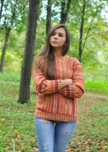 As previously stated, sweaters can be made with a special knitting style, imitating three-dimensional patterns, and also be made with a special style, combining threads of different colors and resulting in an interesting ornament or print.