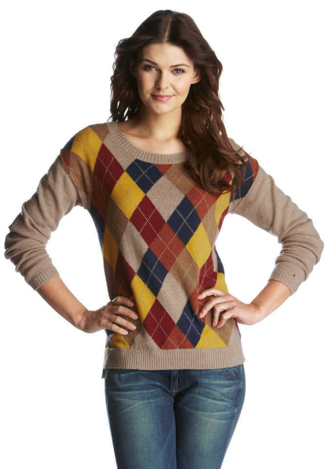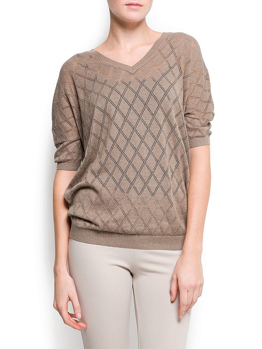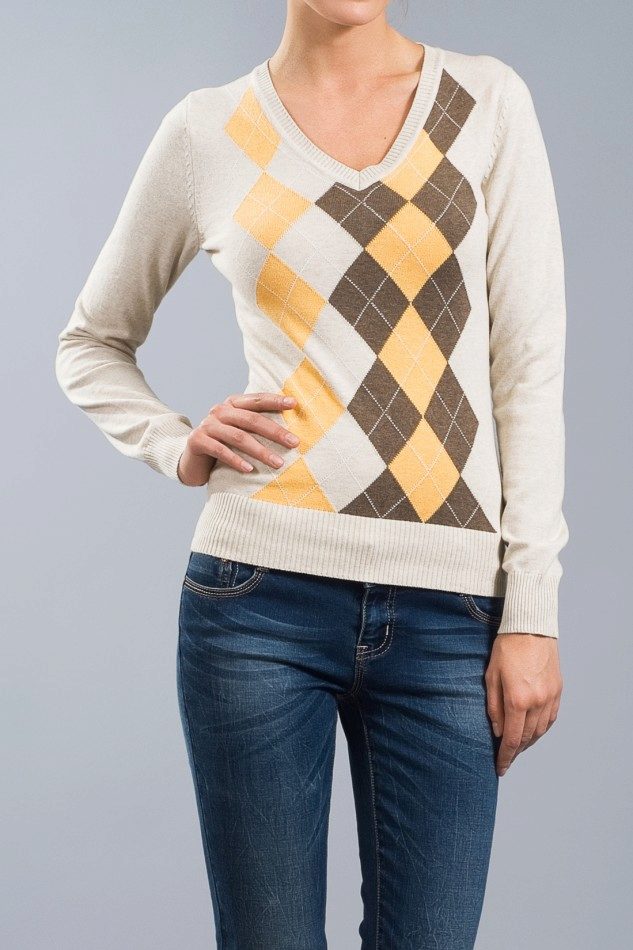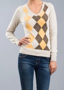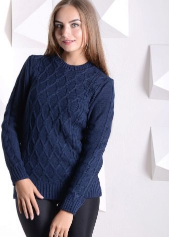 Diamonds on a sweater can be obtained either through a special style of knitting, as well as with a combination of fibers of different colors, knitted in the form of an appropriate ornament.