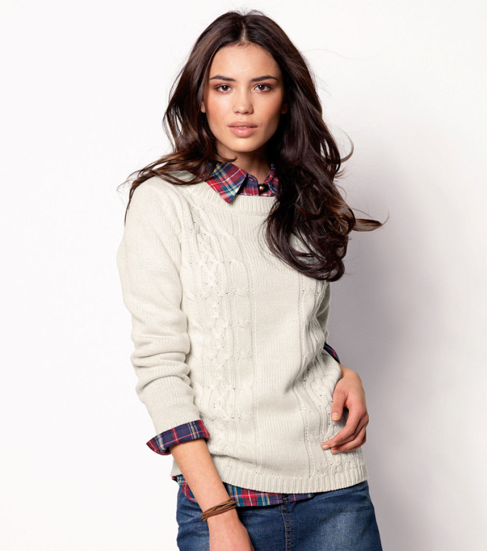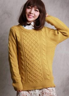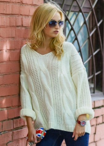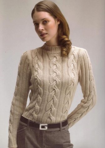 Braid sweaters are the brightest representative of the most feminine models, since this knitting technique makes the product more airy and visually light.