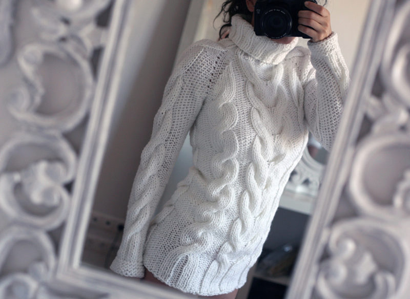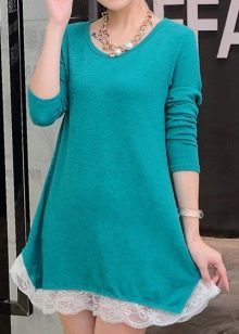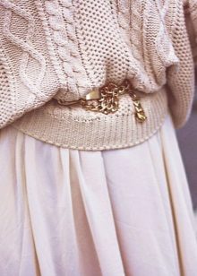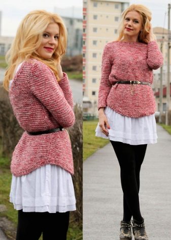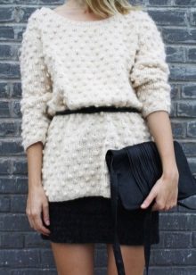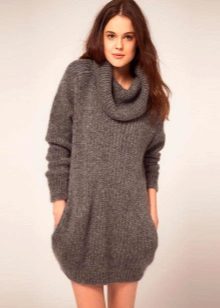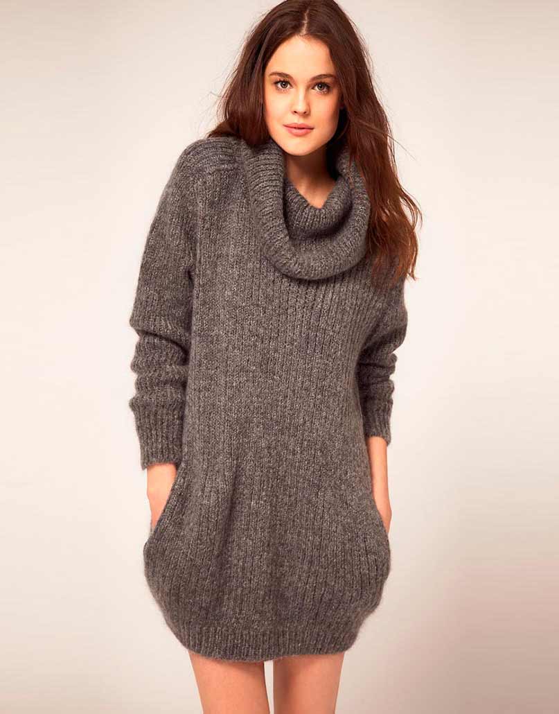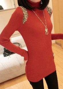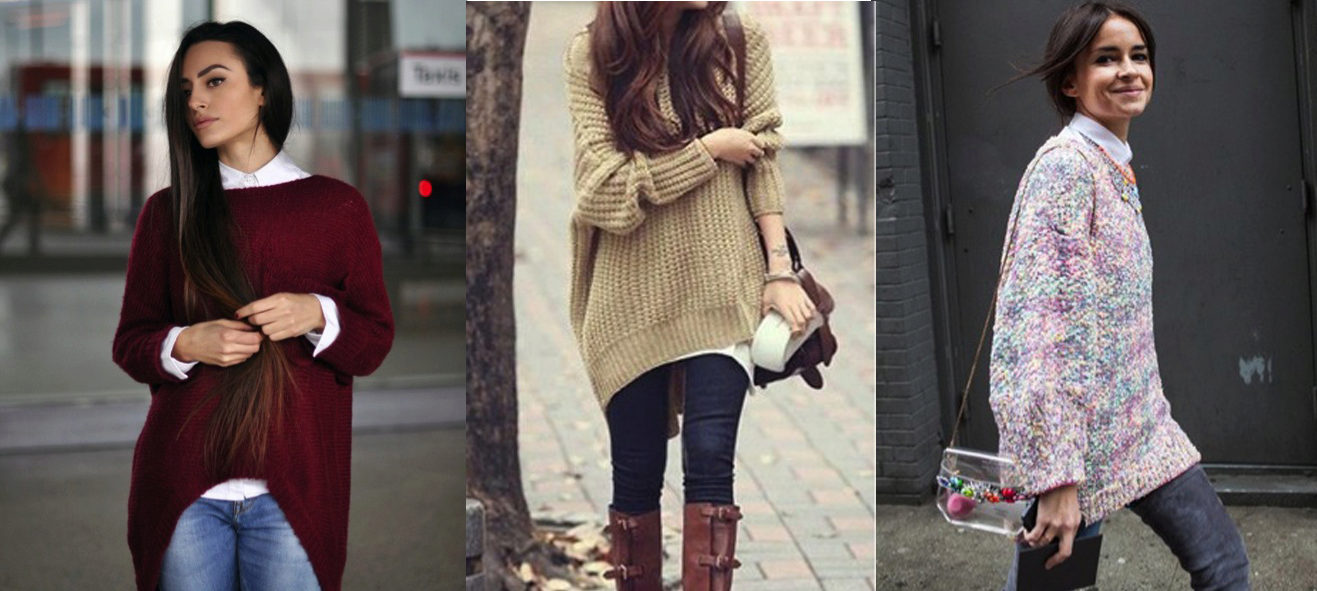 Many girls opt for elongated models of tight-knit sweaters, because they can be worn as a winter wool dress, adding only a wide belt at the waist.
