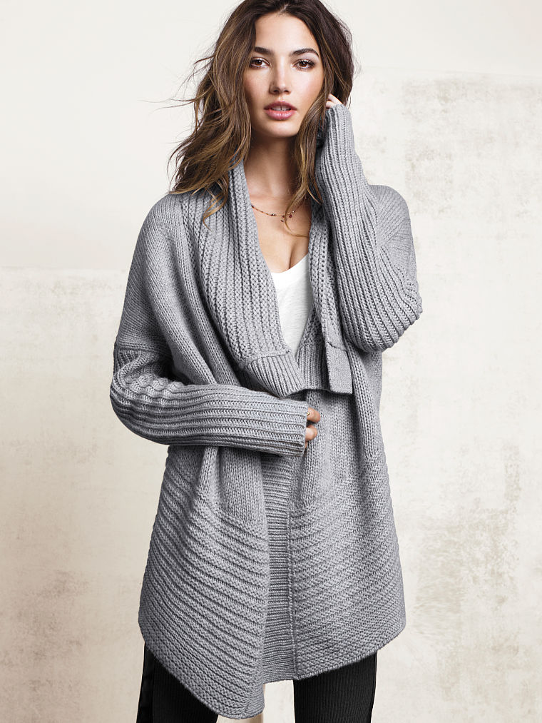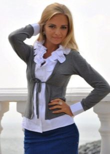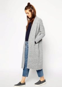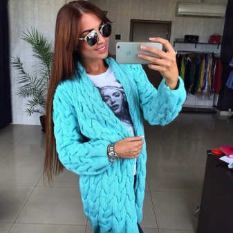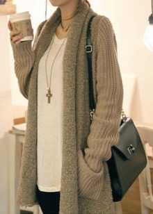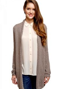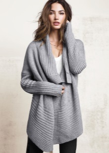 Models of sweaters - cardigans have a corresponding appearance, which is determined by the absence of a high collar and the presence of various kinds of fasteners, whether they are buttons, zippers, buttons or a belt. From the classic cashmere cardigans, the product is distinguished by a more dense material and a larger viscous.