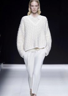 The long-forgotten noodle sweaters, which were popular in the USSR, came back into fashion again and are well applied in the framework of business style.