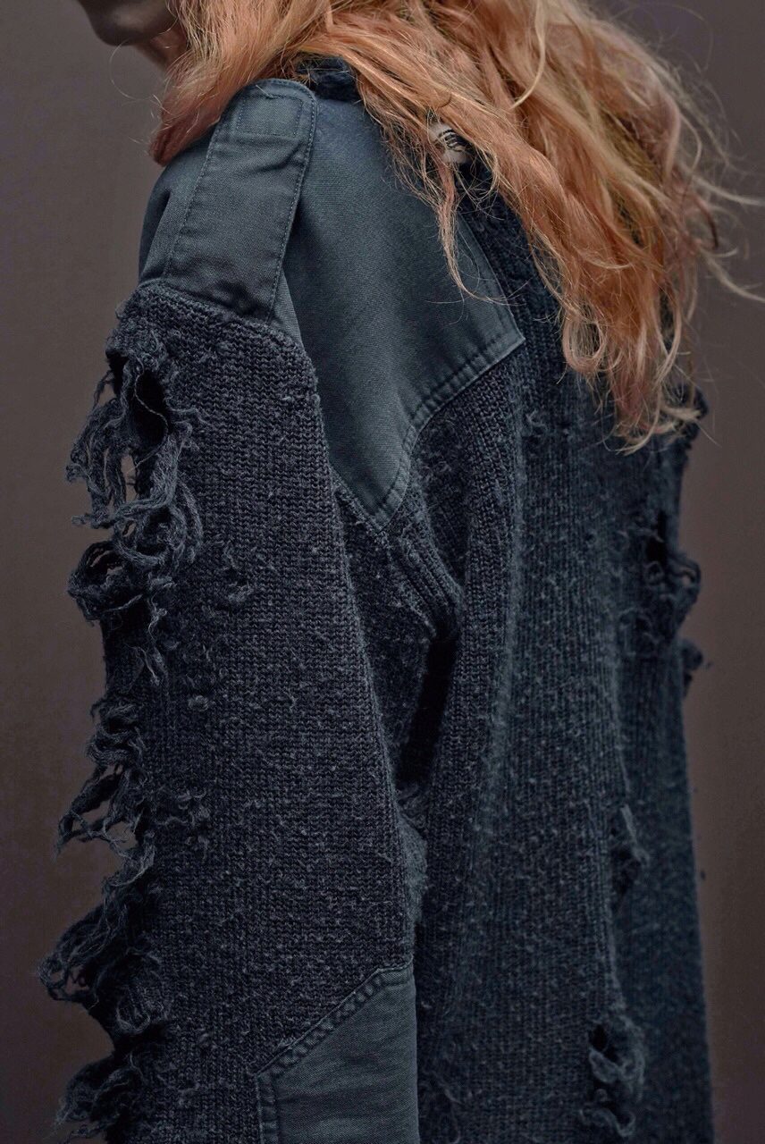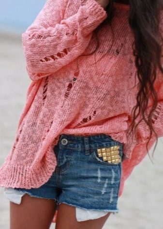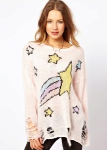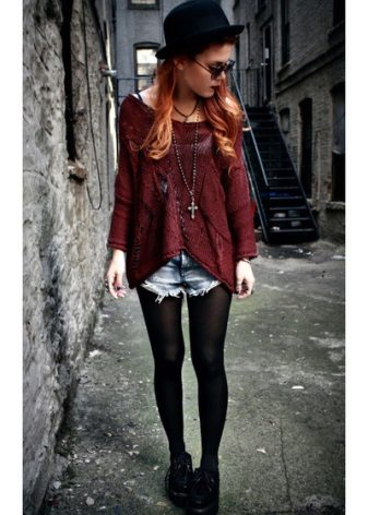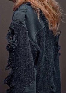 For example, a grunge sweater has a distinctive distinctive feature in the form of elongated sleeves and frayed elbows. Also characteristic and elongated loops, or even holes, made as a decor.