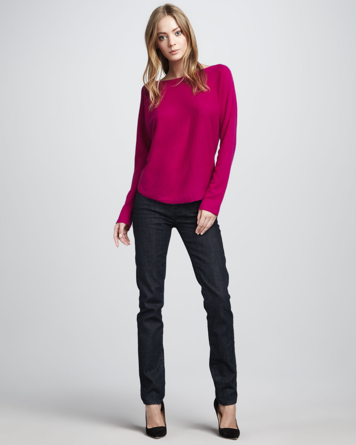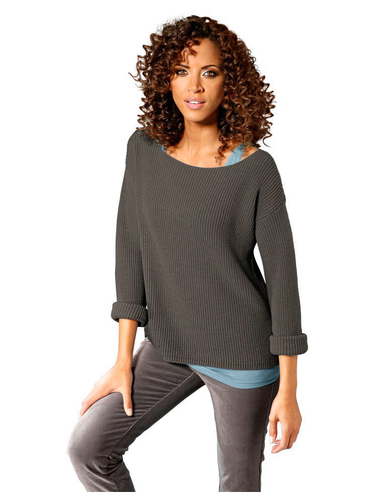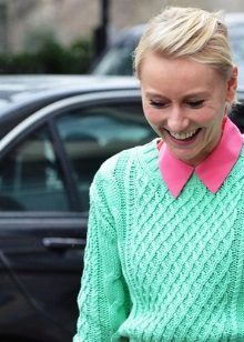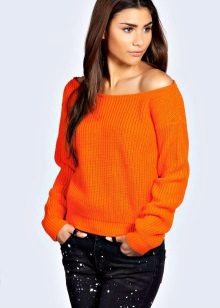 Various versions of cutouts of sweaters have already been mentioned, but I would like to mention once again the most common ones - round and v-shaped. The cutout of the boat, which is more elongated and opens the clavicle, is also popular.