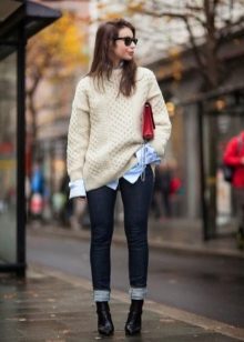 Regarding the combination of sweaters with other things you can choose a lot of options, the main thing to consider the model and the thickness of the product.