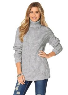 A sweater is called warm clothing made of knitted, most often natural, wool fabric, intended for the upper half of the body. Most often, sweaters have a straight cut and a classic length to the waist, as well as a high collar that can be rolled up several times.