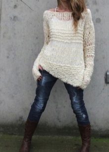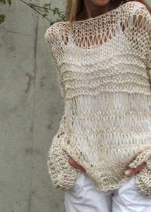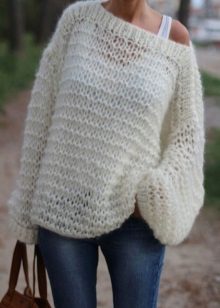 Thin sweaters made of thin threads look like light blouses and are suitable for use even in warm weather, since often such models are made in a free fashion, which allows the product to be well ventilated. In addition, it is the openwork models most often made in the form of thin sweaters, so that they look so feminine and airy.