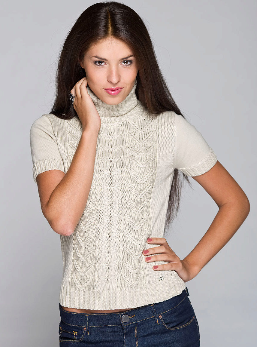 The short sleeve is not as functional as it is poorly protected from the cold and is used only as a decorative element in models of knit sweaters.