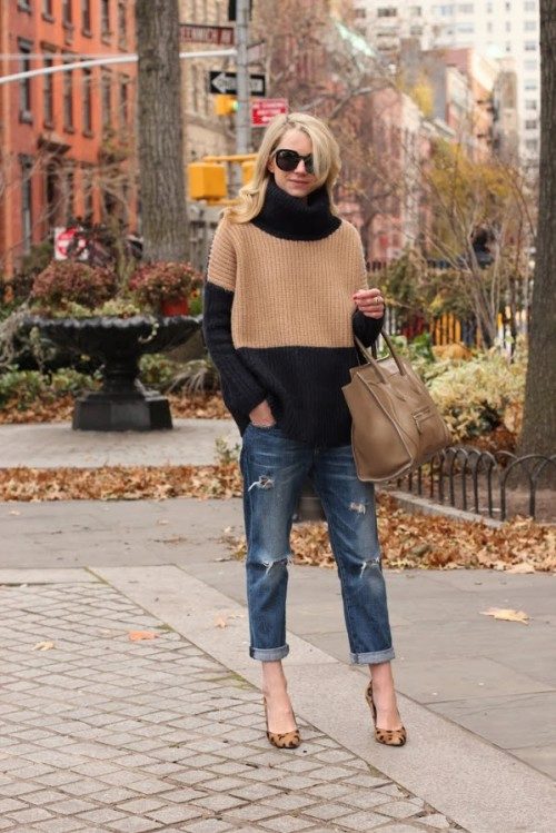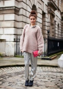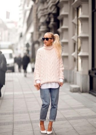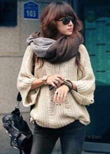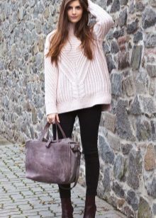 - Included with the oversized sweater is better to focus not on the color palette, but on the game of textures. For example, fluffy wool looks great with jeans.