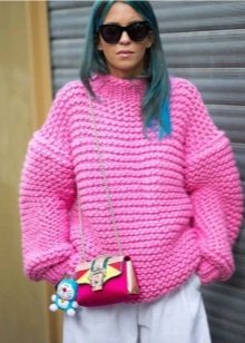 - From bulk yarn - the very case when you want even more volume. Thick yarn allows you to make a sweater warm, often a similar product replaces outerwear - jacket and coat.