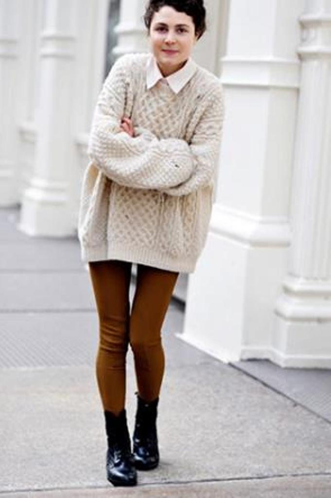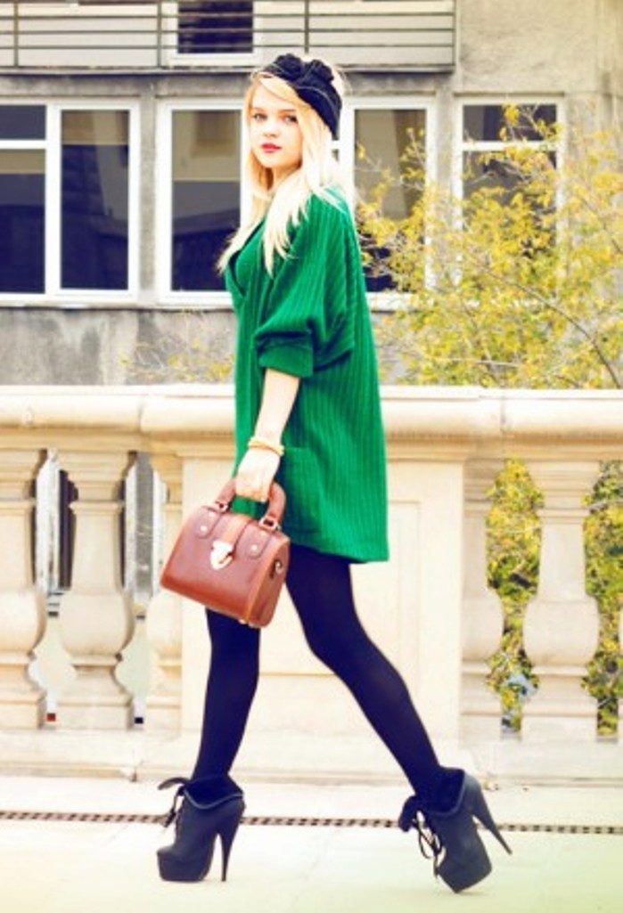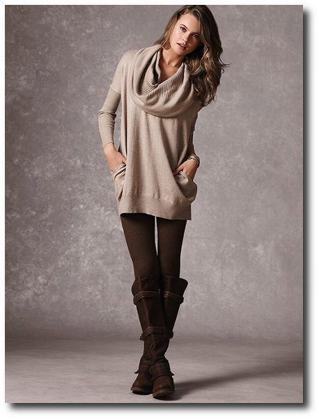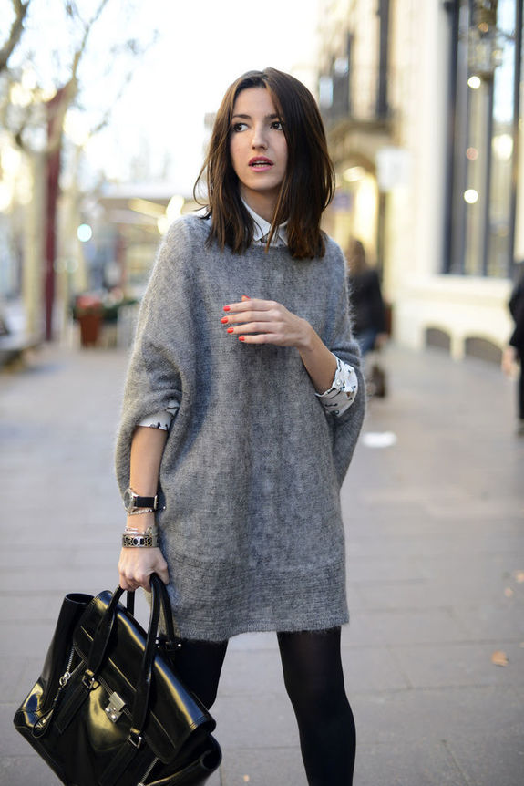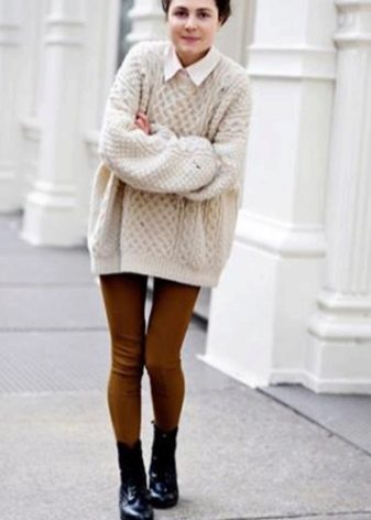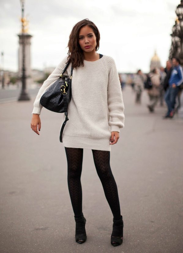 - The extended sweater tunic. You can wear instead of a dress under the tight tights or tight pants.