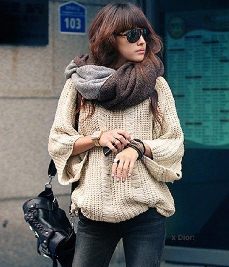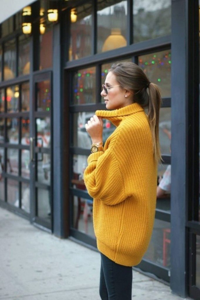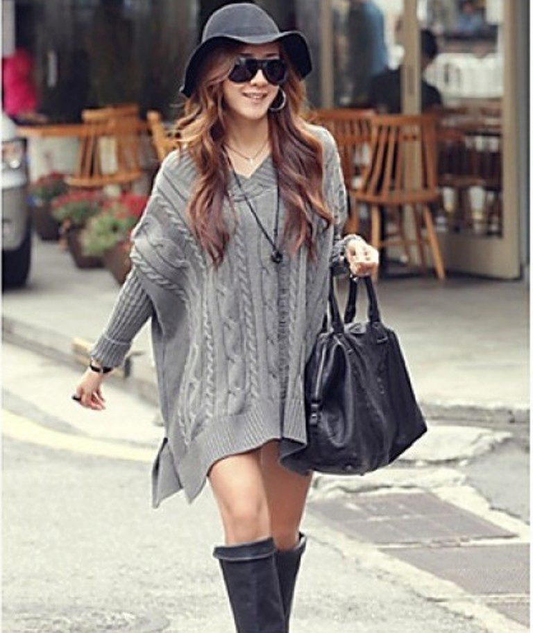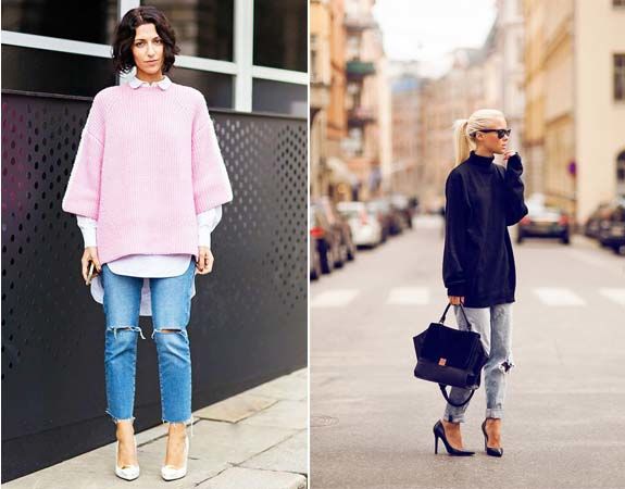 Girls of small stature and owners of lush breasts and wide shoulders should be wary of oversized sweaters and ensure that the shoulders are in place.