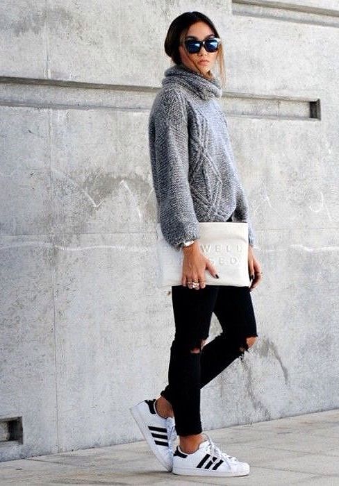 Variations on skinny jeans and leggings are a true casual style, so simple and comfortable. There is nothing superfluous here, each image is a verified completeness of things that are combined with each other, both in color and texture.