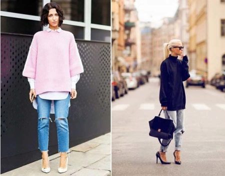 Overseas sweater models are many. It is understandable, such a super-popular style is simply obliged to have not one, but as many modifications as possible. Every woman of fashion among the variety of styles will find something for themselves.