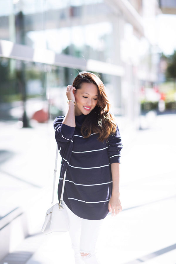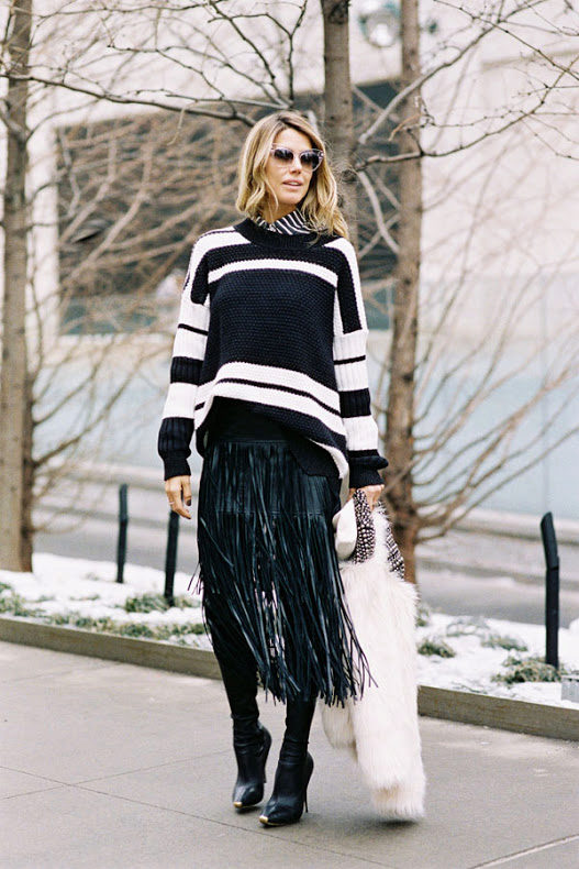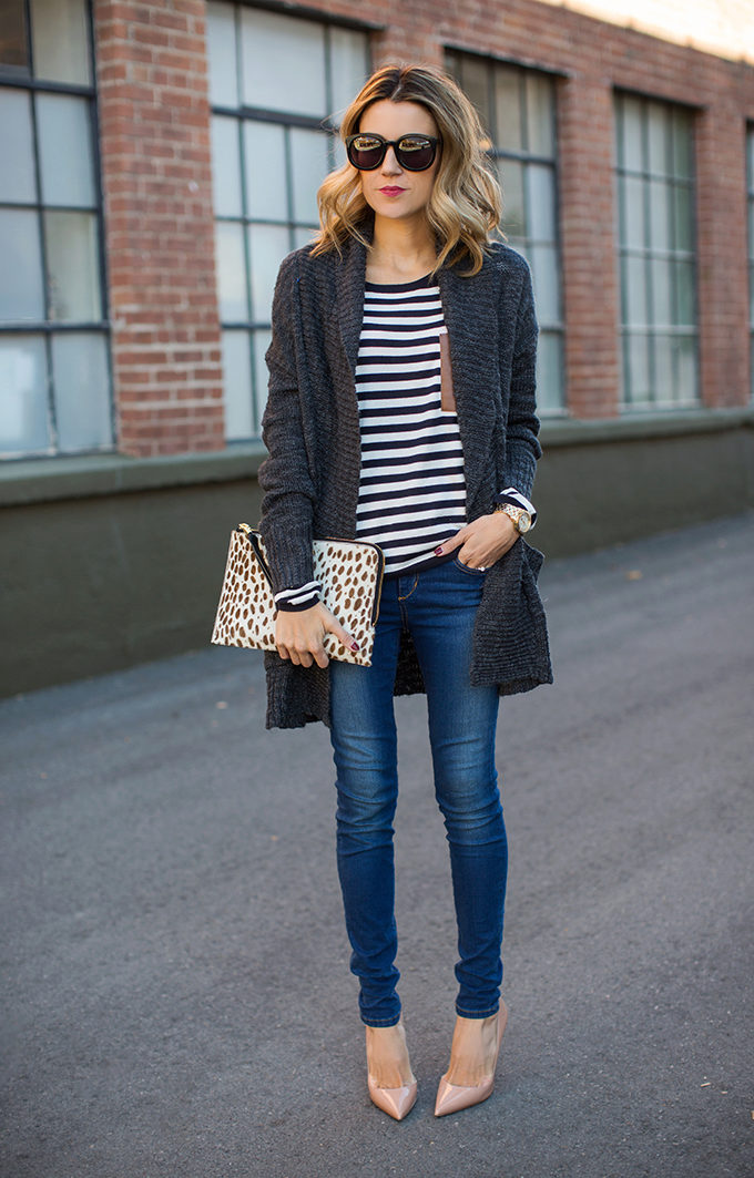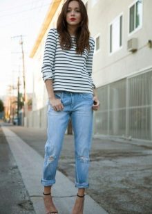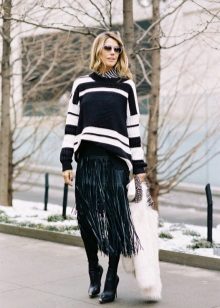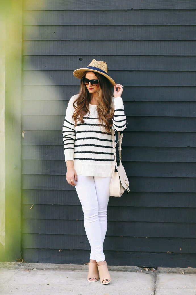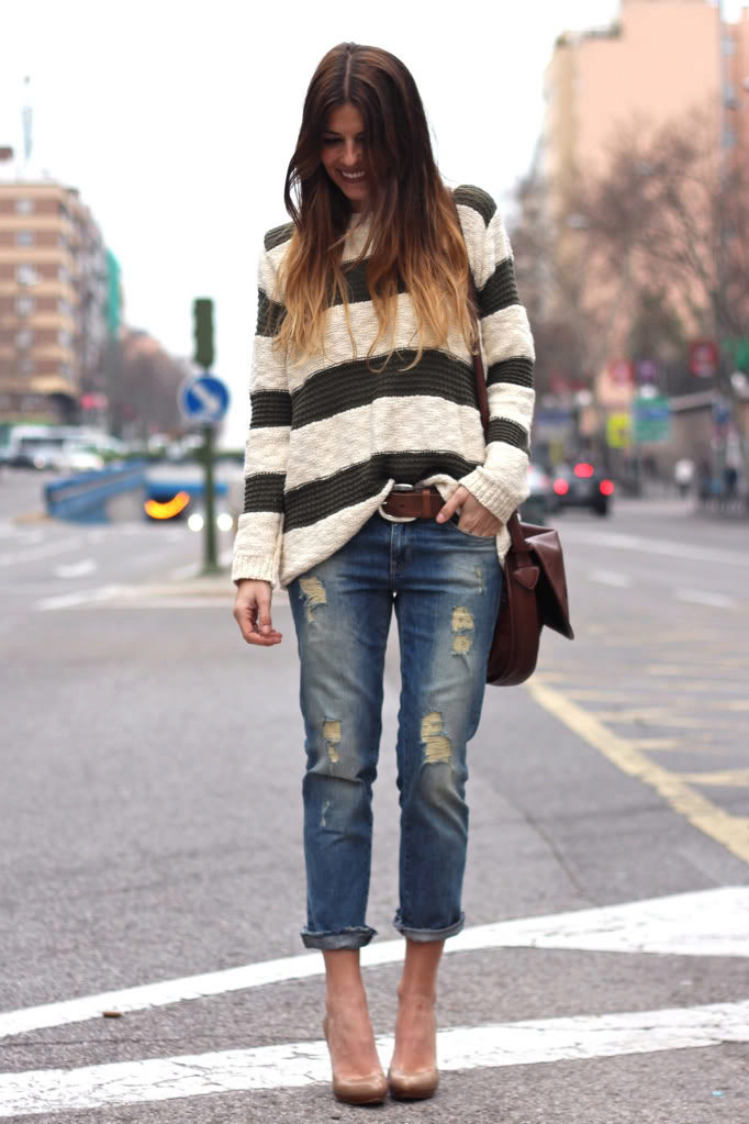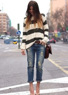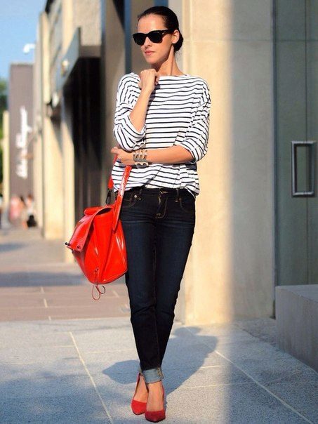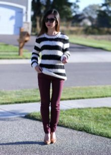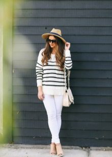 Striped sweaters diversify any wardrobe, the main thing is to remember one important rule: all other clothes, shoes and accessories must be used in one color. And their colors should be the more neutral, the brighter the top.