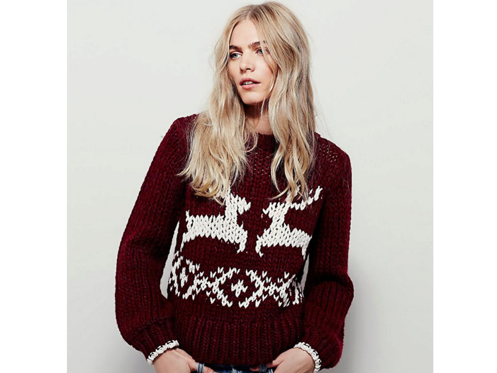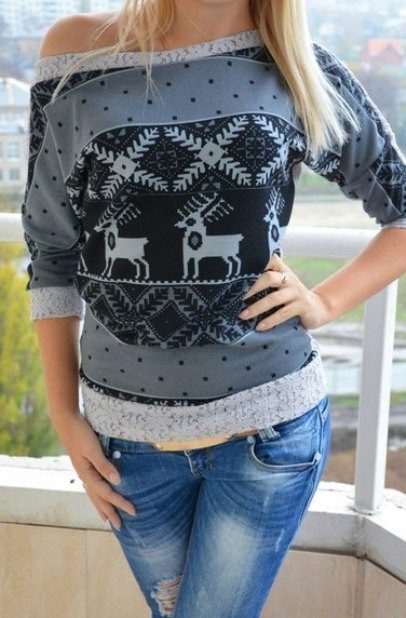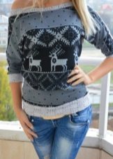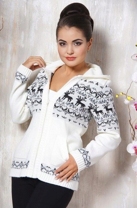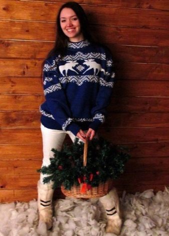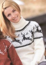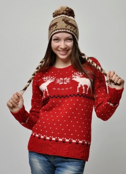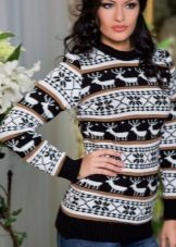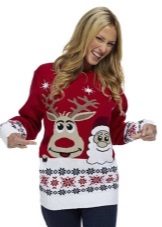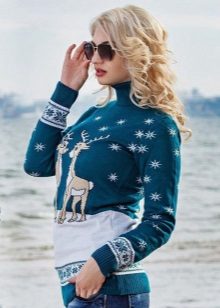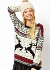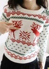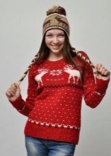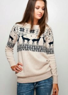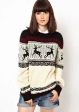 If you choose the right set of clothes, then in a sweater with deer you will not look ridiculous. With the help of this knitted product with an unusual ornament you can create unforgettable, very attractive bows.