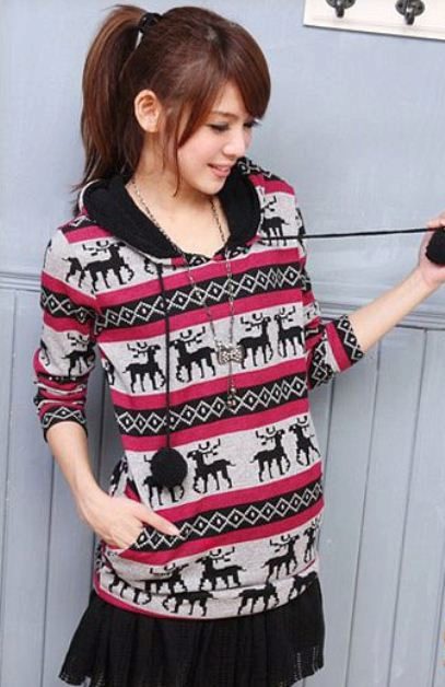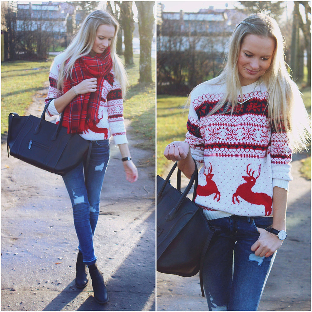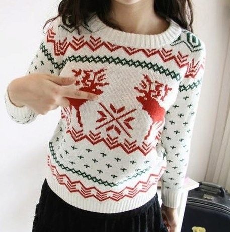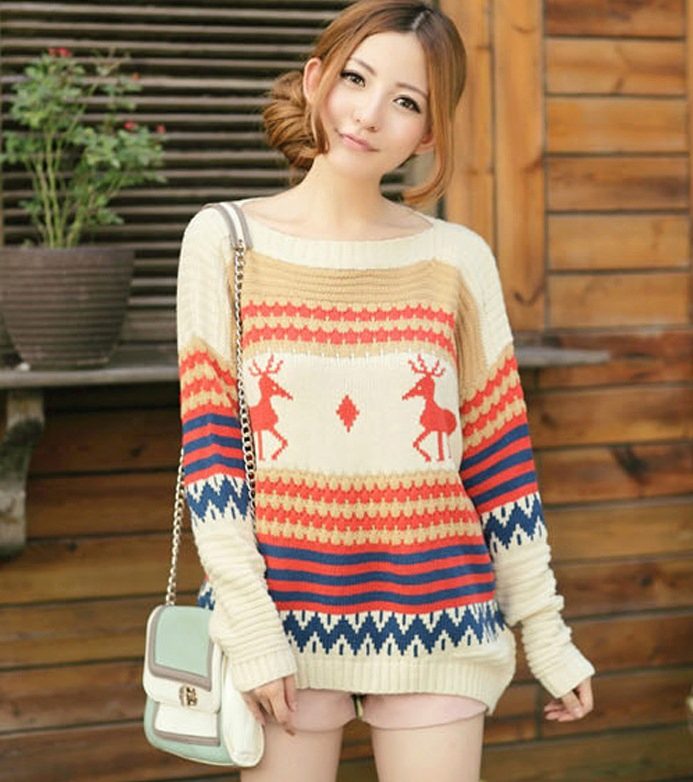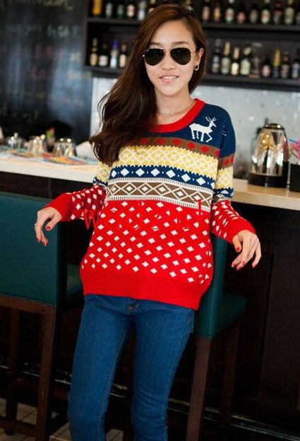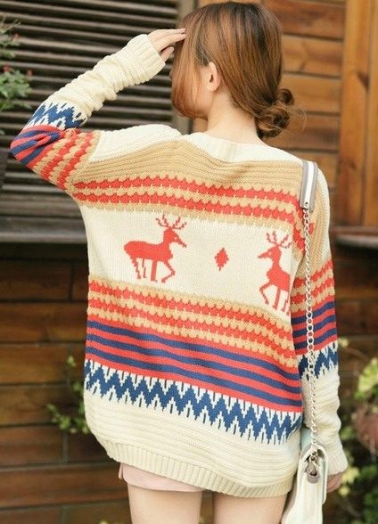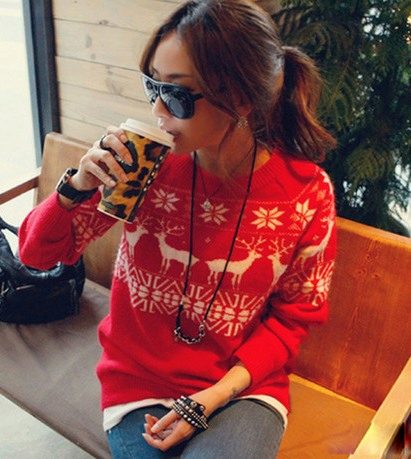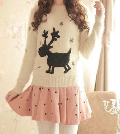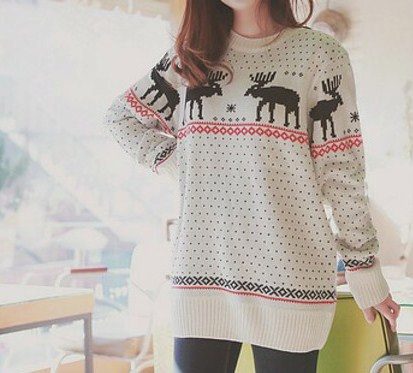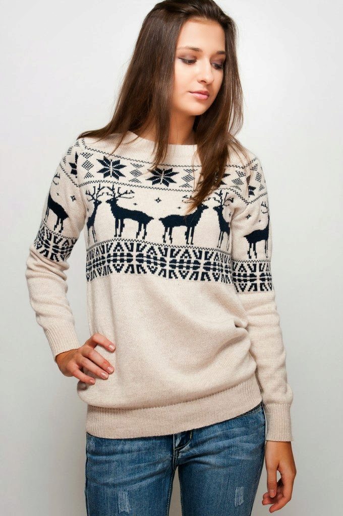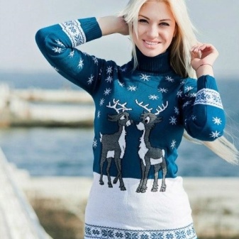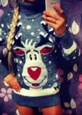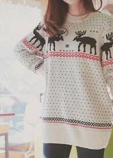 The most pleasant thing is that thanks to a sweater with deer you can look both cute and stylish. A light scale, light short skirt, pantyhose and an accessory in hair will help to create a gentle look. And in a long monophonic skirt or a dress in a floor, a classical sweater and a warm scarf you will look as never elegant.