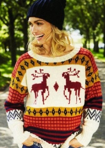 However, speaking of the diversity of the color palette of sweaters with deer, it is worth noting that Here it is important not only their number and shades themselves, but also the pattern of the picture.